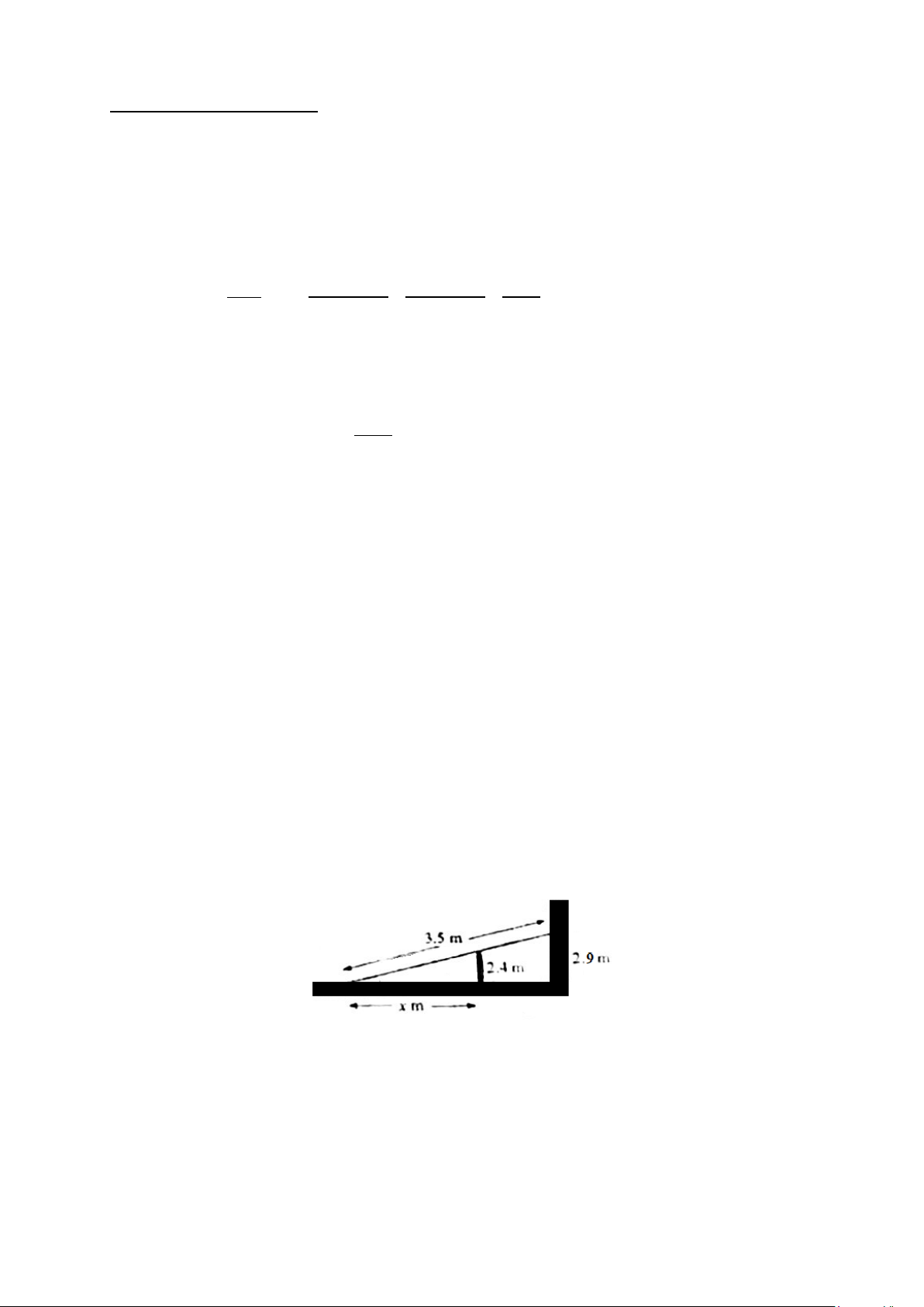 lại tựa vào một bức tường ở độ cao 2,9m (xem hình vẽ). Hỏi khoảng cách từ đầu thang đặt trên mặt đất đến