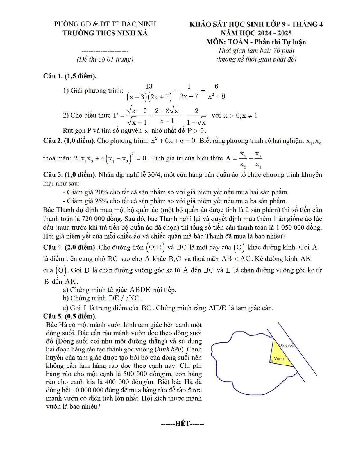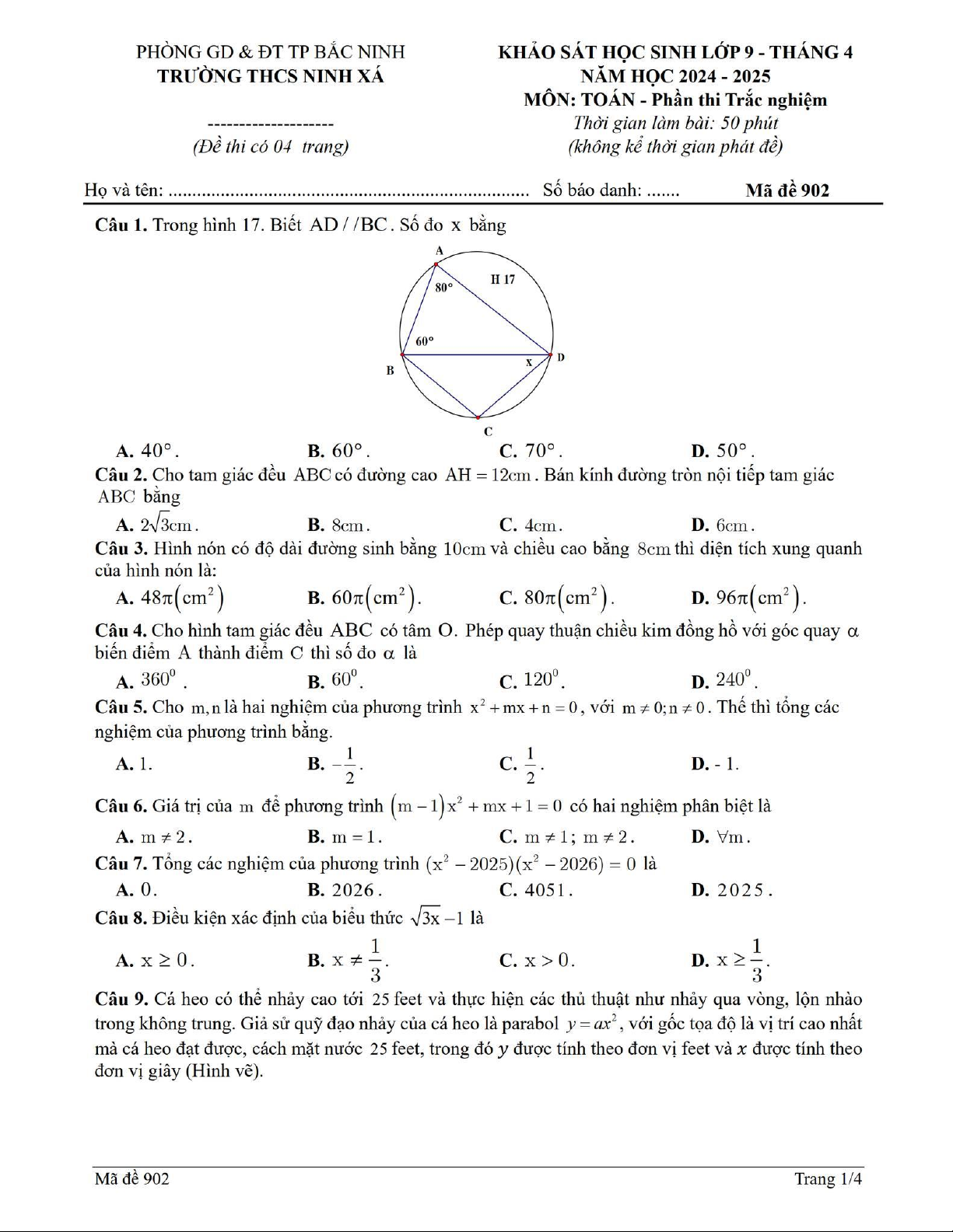 Đề khảo sát Toán 9 tháng 4 năm 2025 trường THCS Ninh Xá – Bắc Ninh