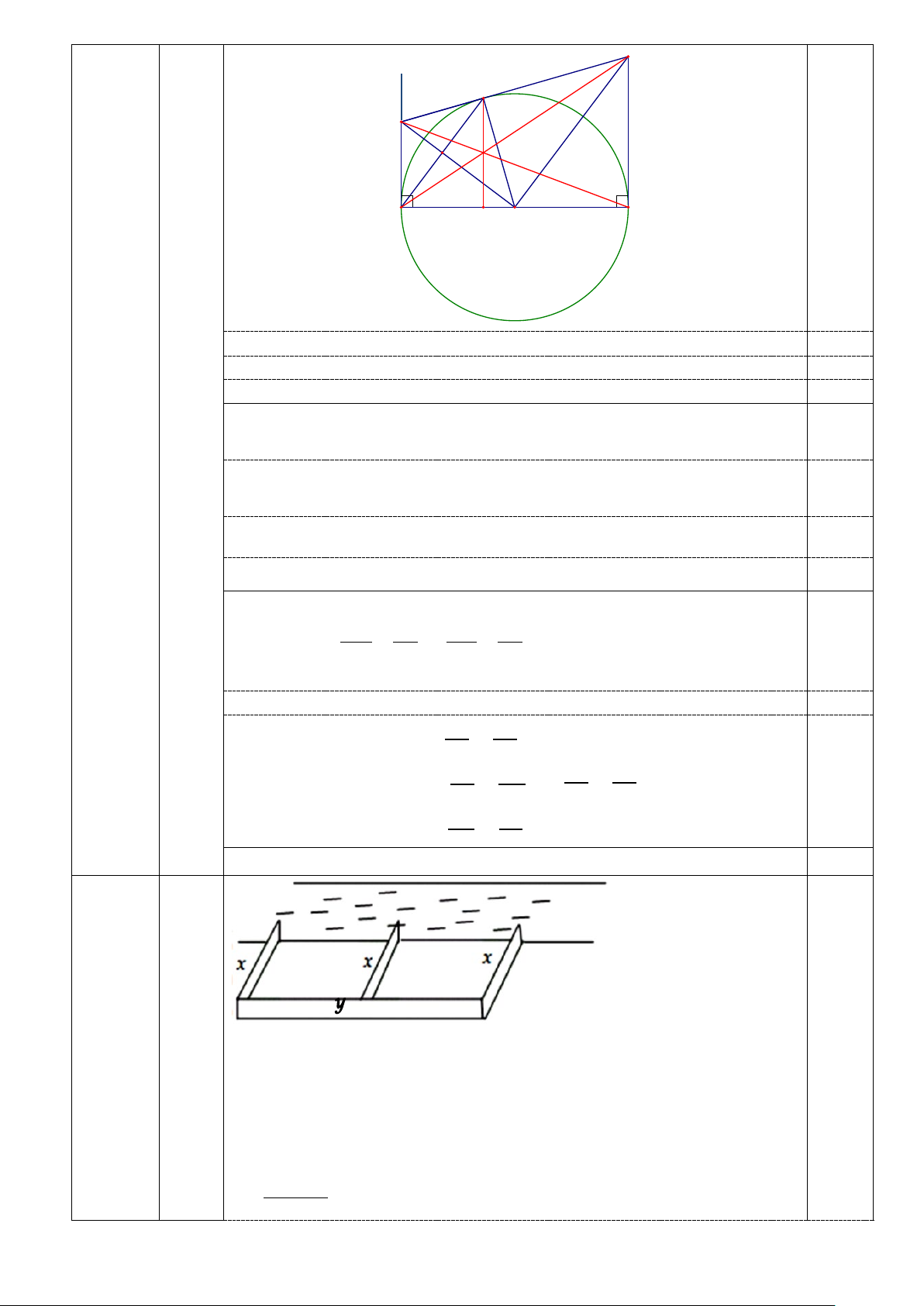 Gọi chiều dài của hàng rào vuông góc với sông là x (m) và chiều dài (0,5đ)