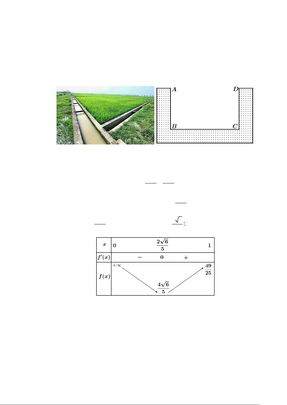 Câu 4: Hình dưới đây là mương dẫn nước thủy lợi tại một địa phương phục vụ tưới tiêu cho ruộng