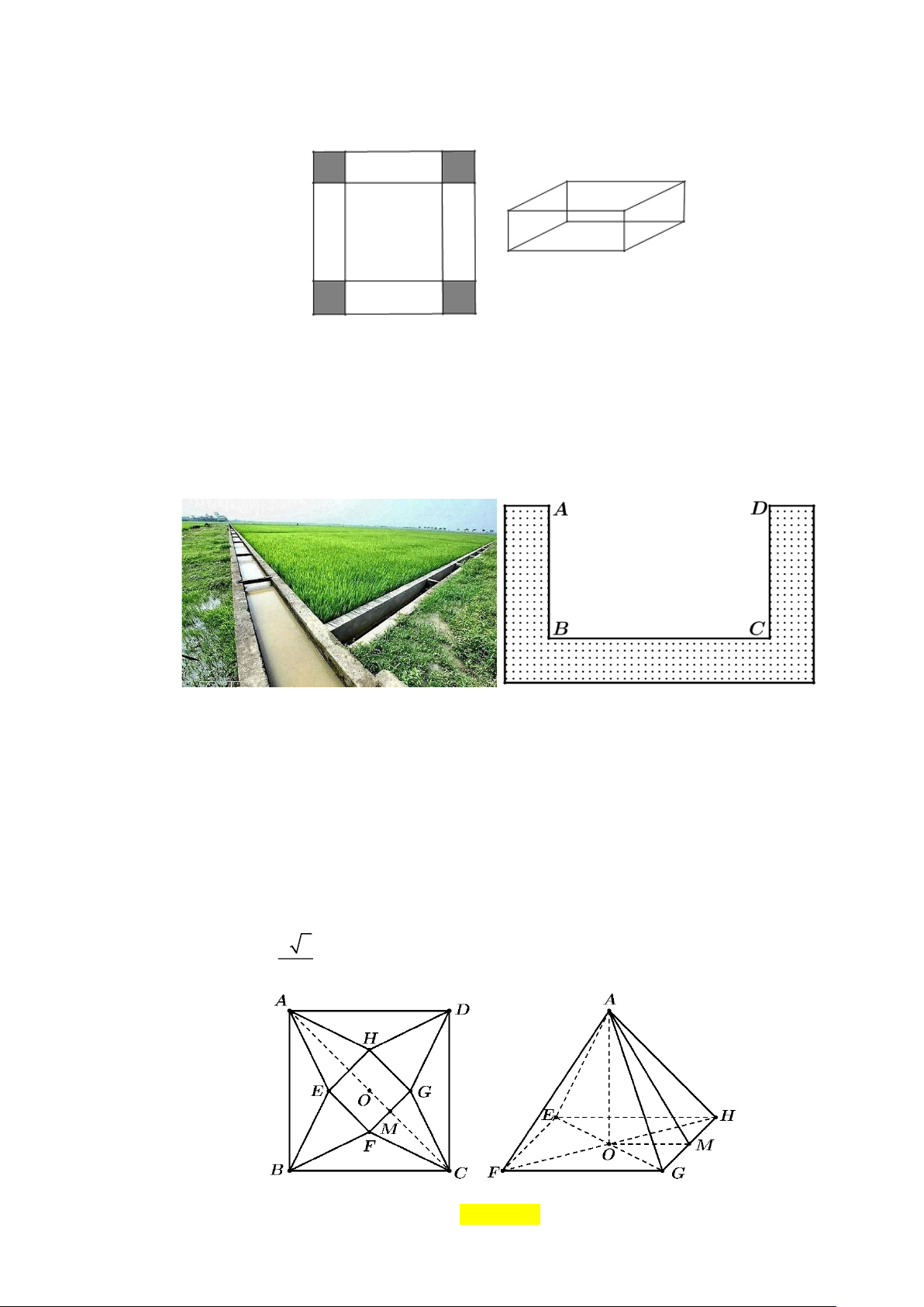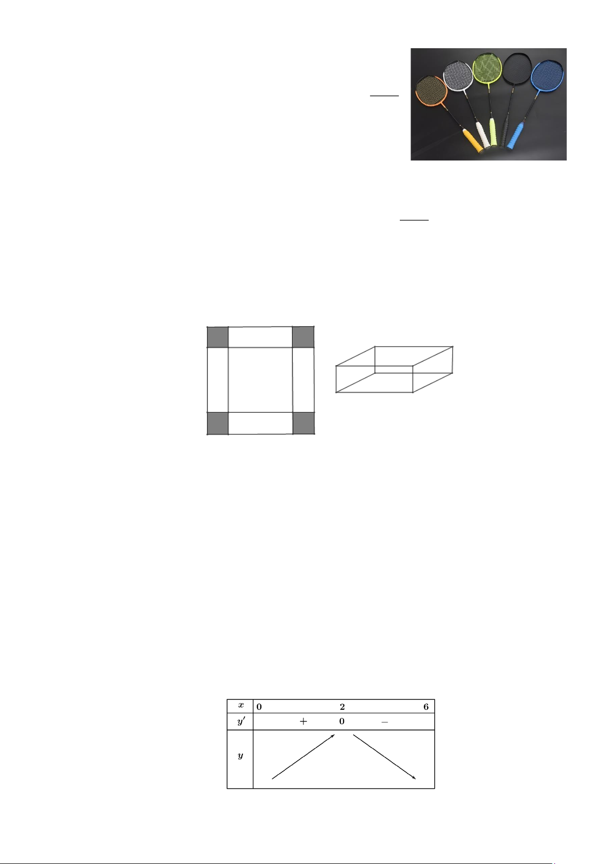 Câu 3: Cho một tấm nhôm hình vuông cạnh 12 cm. Người ta cắt ở bốn góc của tấm nhôm đó bốn hình
