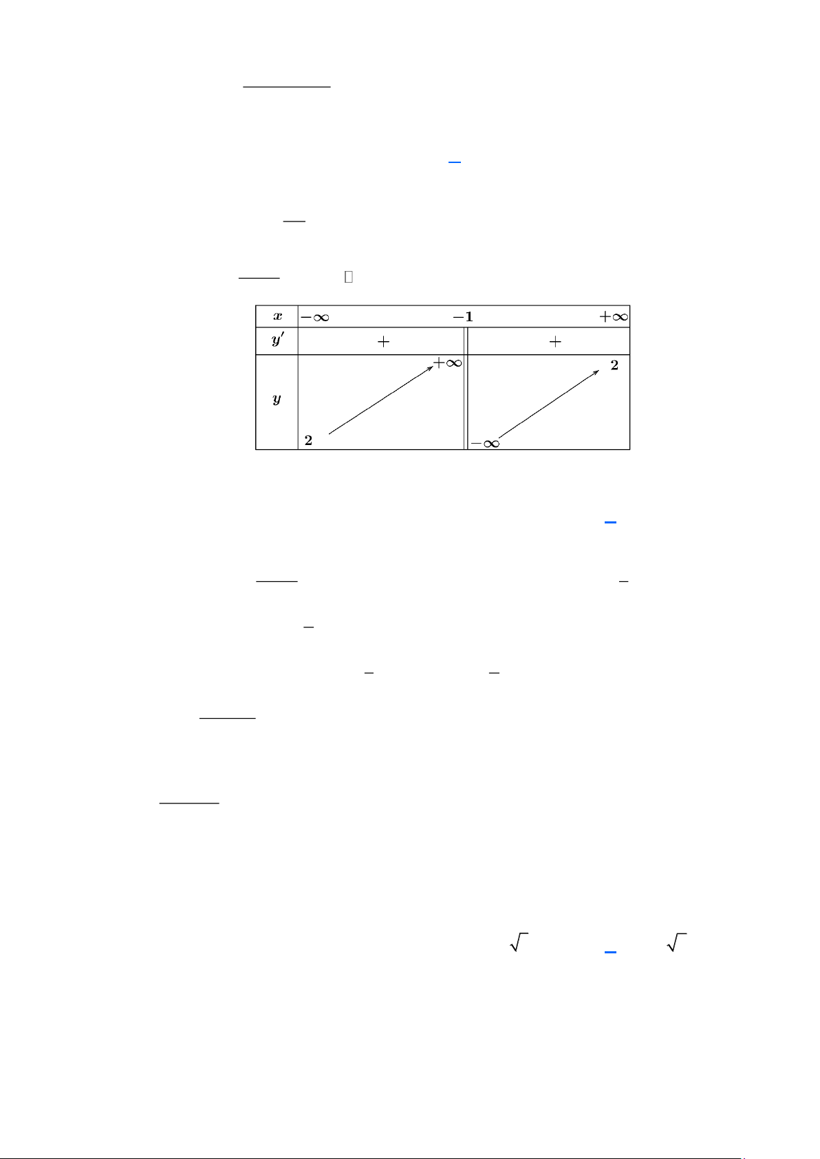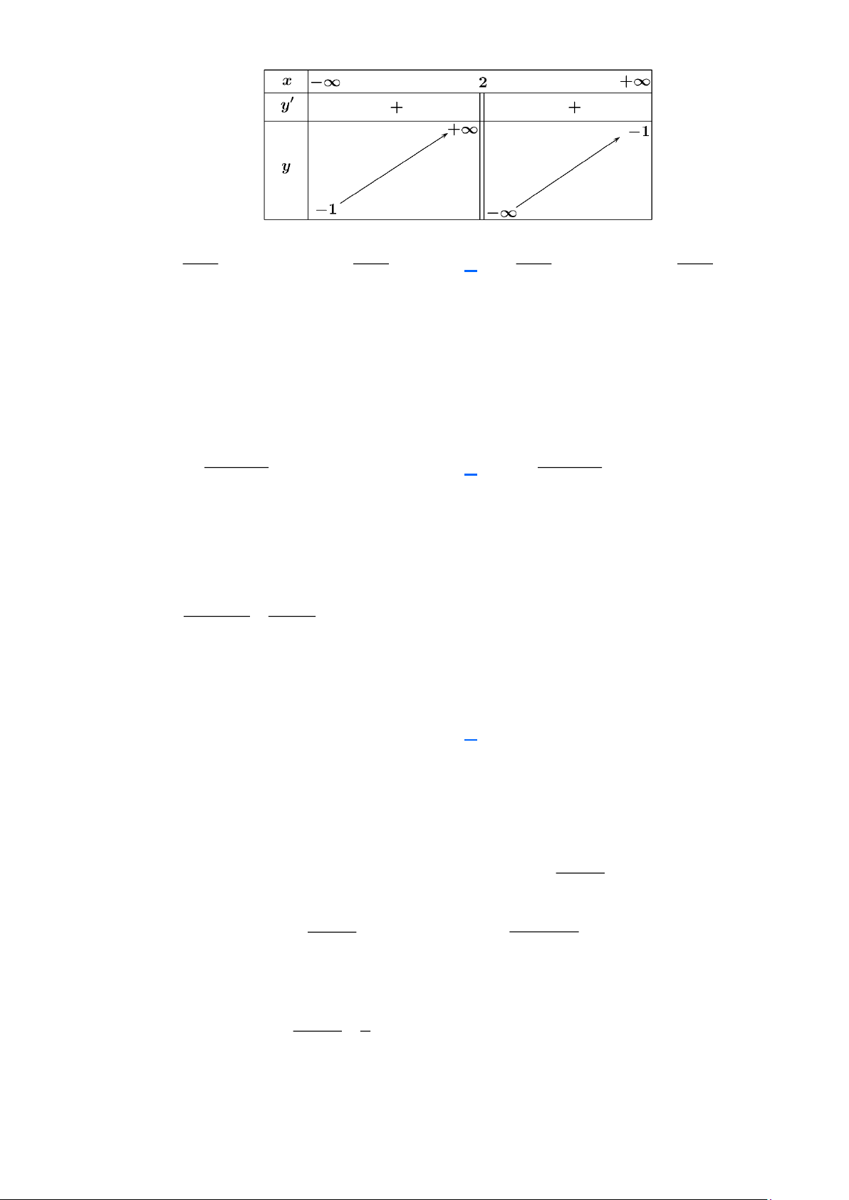 Câu 7: Trong các hàm số sau, hàm số nào có bảng biến thiên như hình vẽ dưới đây: x + 1 x + 3 x −1 x − 3 A. y = . B. y = . C. y = . D. y = . x − 2 x − 2 x − 2 x − 2