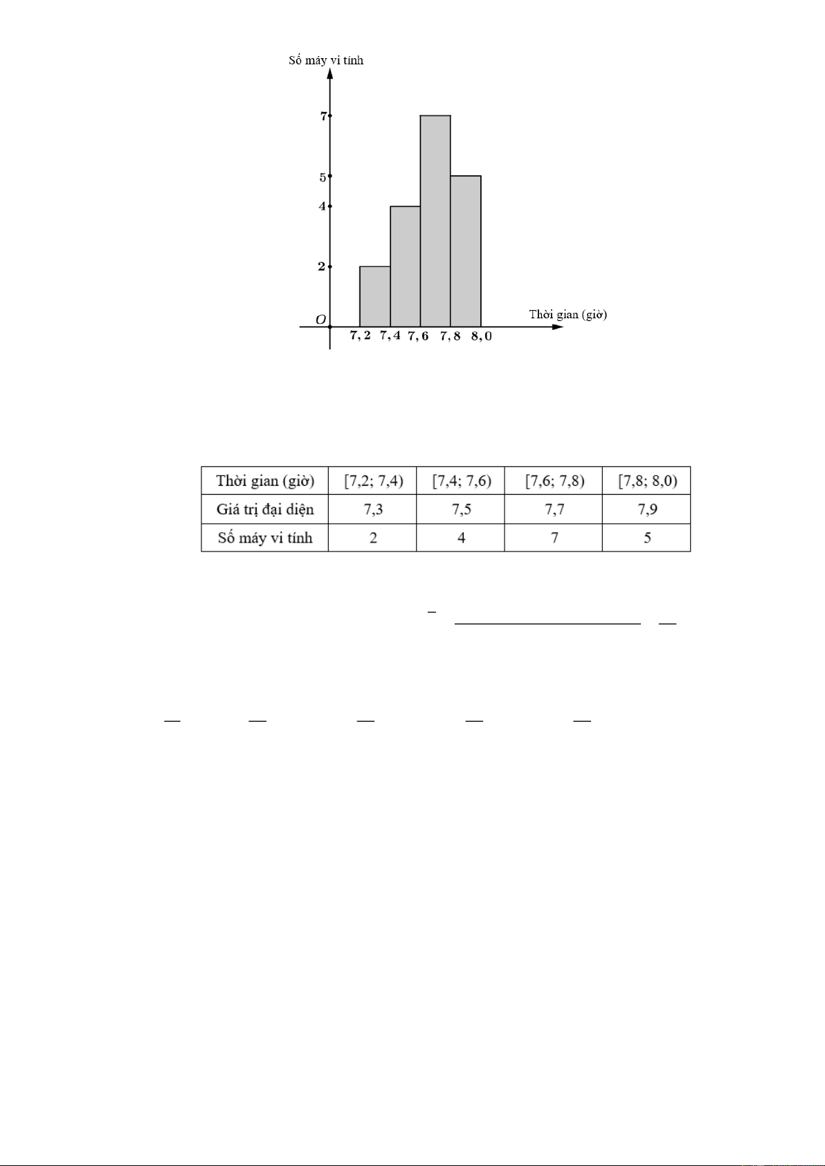 Cỡ mẫu là n = 2 + 4 + 7 + 5 = 18. 2.7,3 + 4.7,5 + 7.7,7 + 5.7,9 23