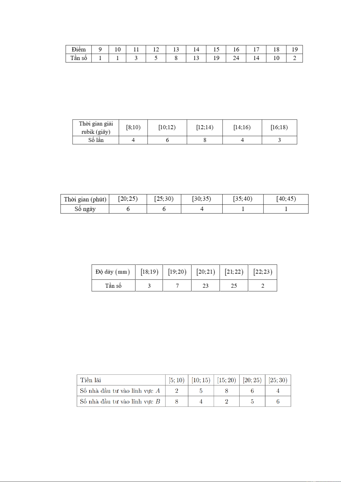 Câu 12: Người ta ghi lại tiền lãi (đơn vị: triệu đồng) của một số nhà đầu tư (với số tiền đầu tư như