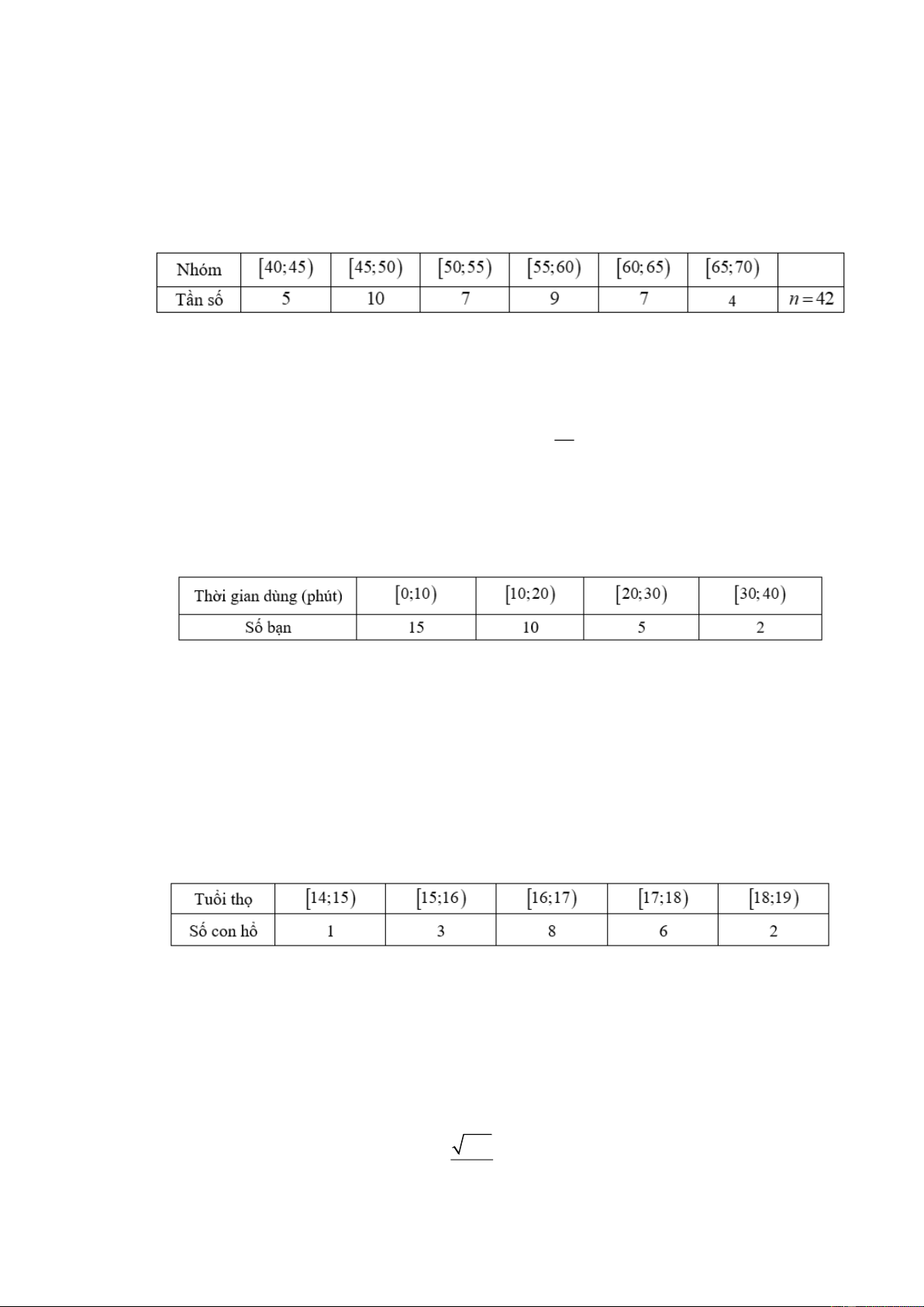 Câu 3: Khảo sát thời gian chơi thể thao trong một ngày của 42 học sinh được cho trong bảng sau (thời gian đơn vị phút):