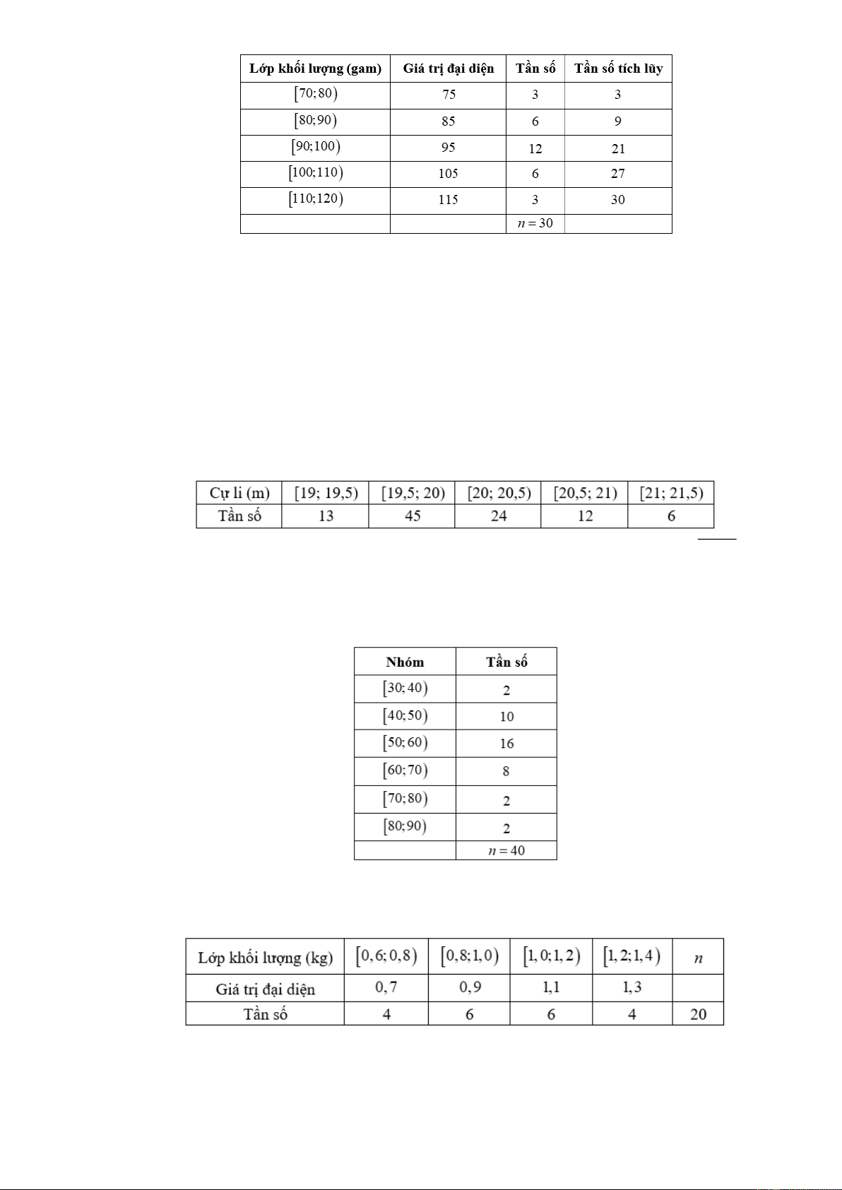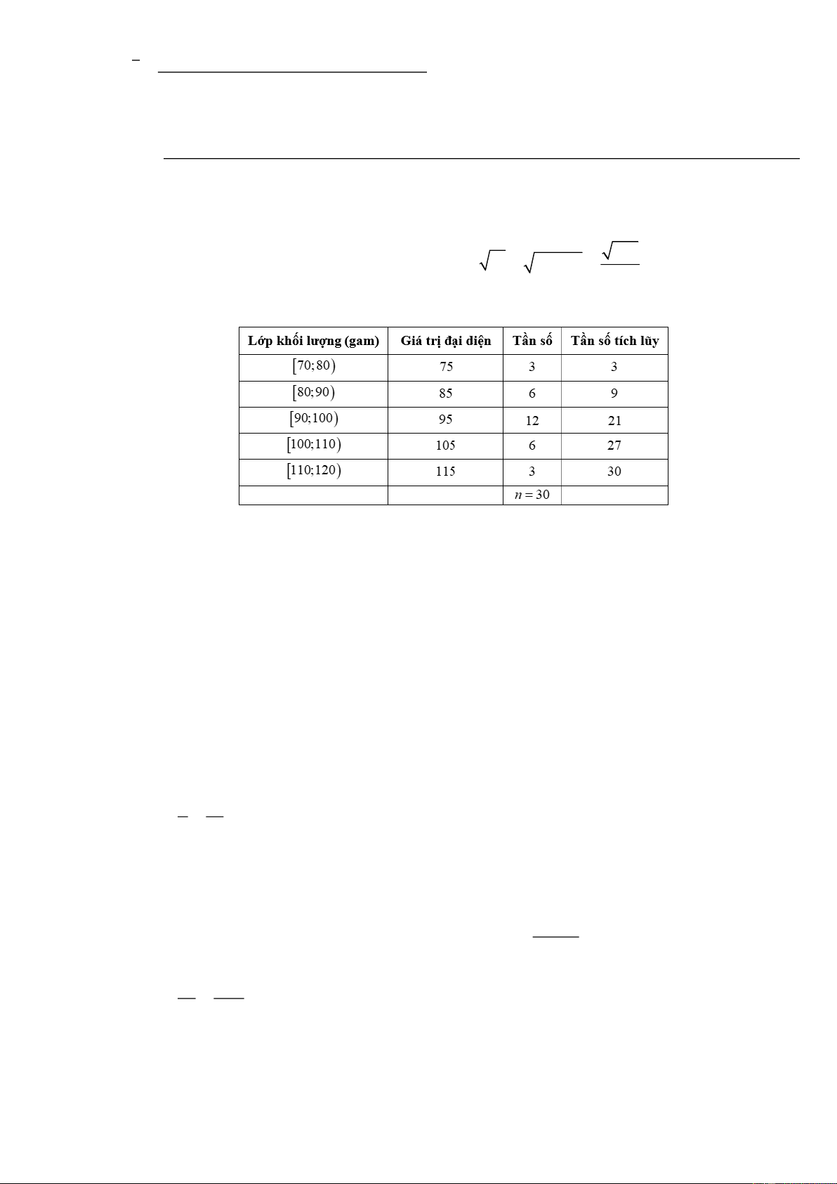 Câu 5: Khối lượng của 30 củ khoai tây được cho trong bảng sau: