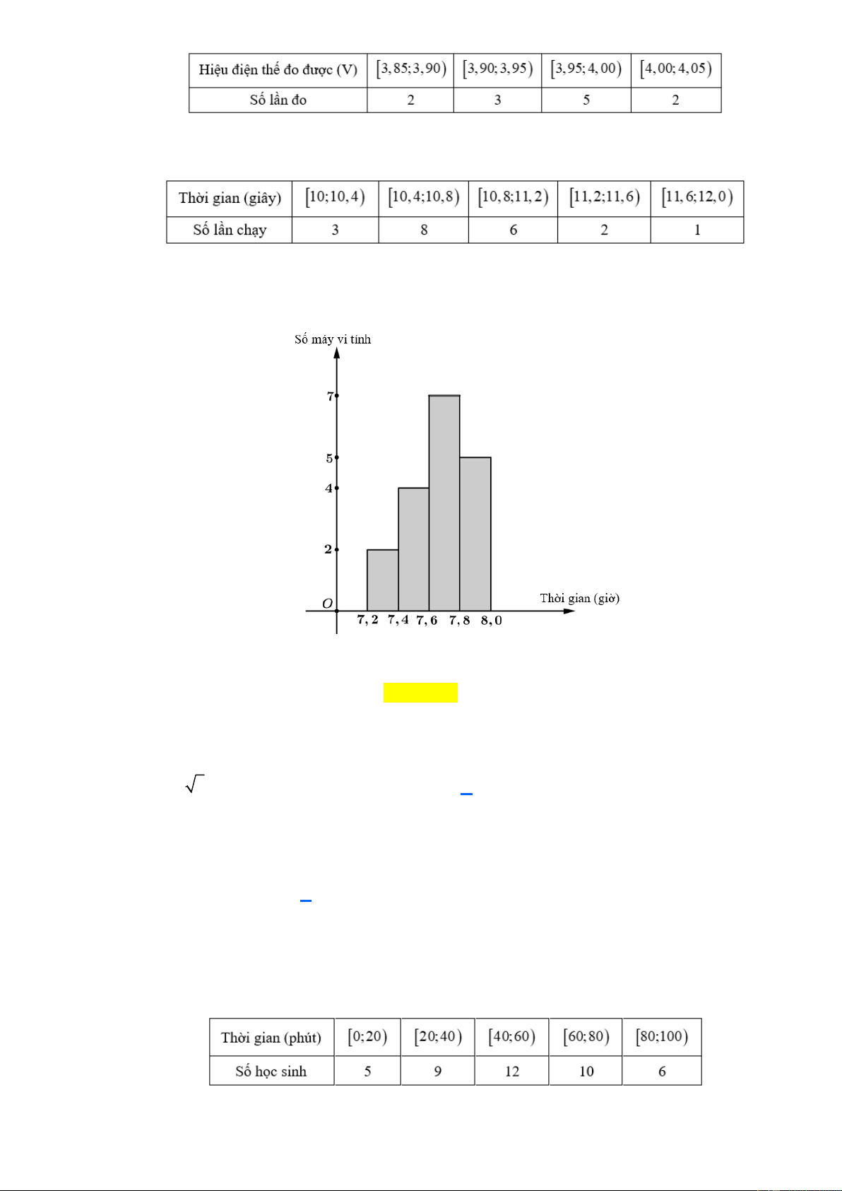 Câu 6: Kết quả khảo sát thời gian sử dụng liên tục (đơn vị: giờ) từ lúc sạc đầy cho đến khi hết của pin