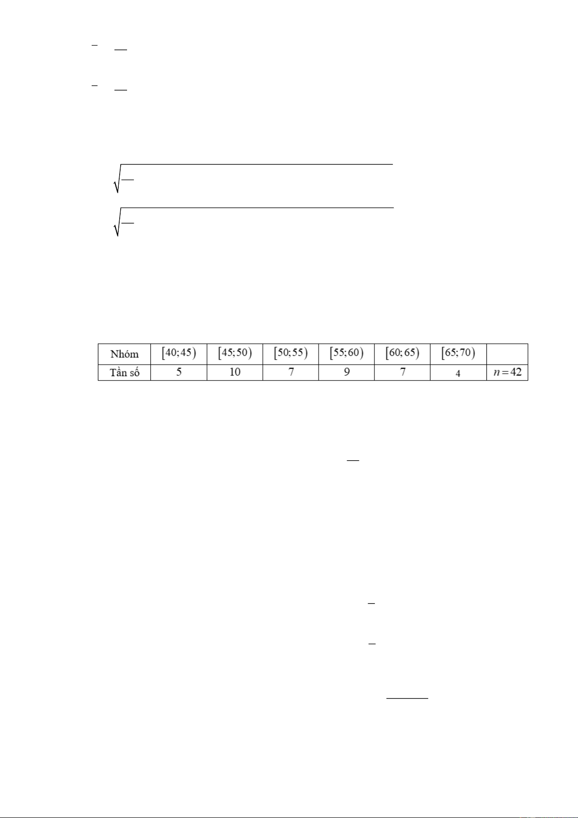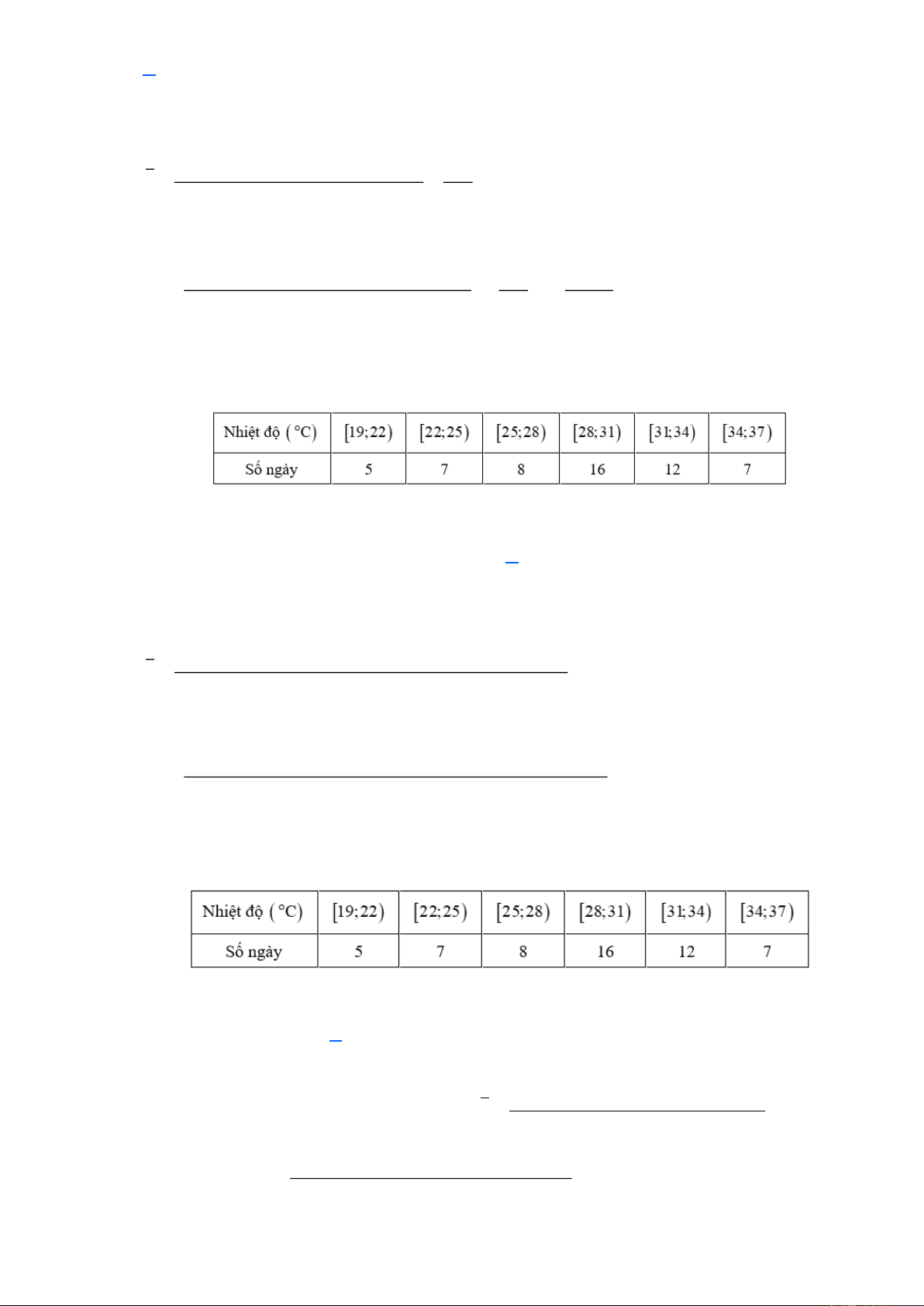Câu 4: Nhiệt độ trong 55 ngày của một địa phương được cho trong bảng ghép lớp sau:
