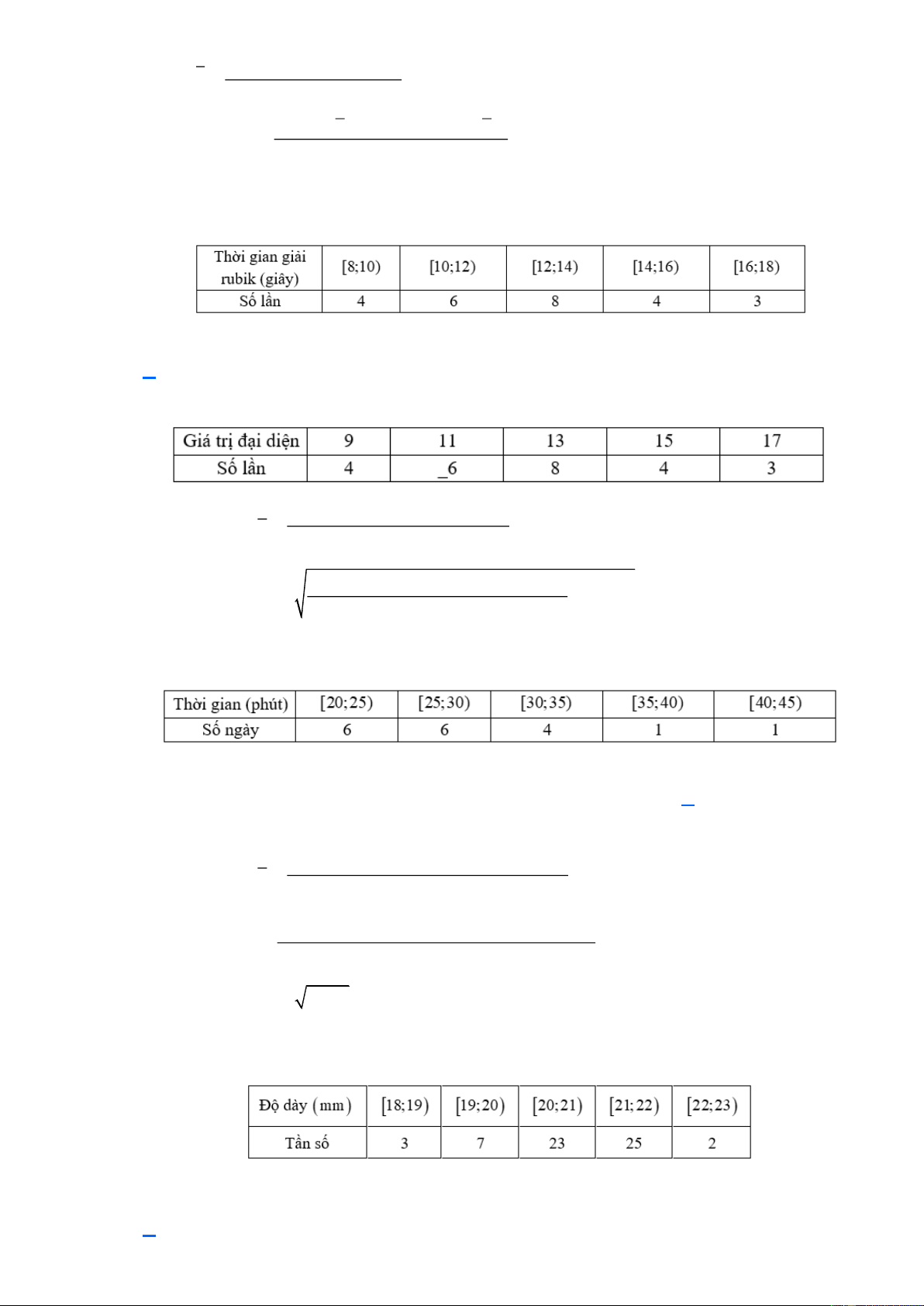 4.9 + 6.11 + 8.13 + 4.15 + 3.17 Số trung bình: x = = 12,68 25 2 2 2 2 2 Độ lệch chuẩn: 4.9 6.11 8.13 4.15 3.17 2 + + + + = −12,68 5,98 25