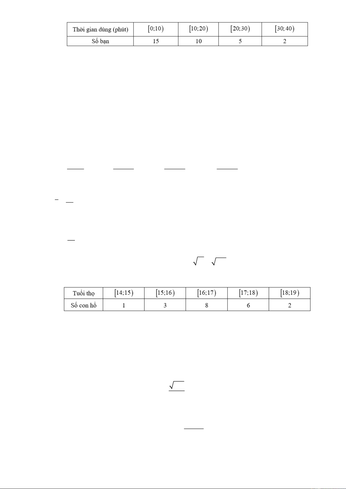 Câu 3: Một vườn thú ghi lại tuổi thọ (đơn vị: năm) của 20 con hổ và thu được kết quả như sau: