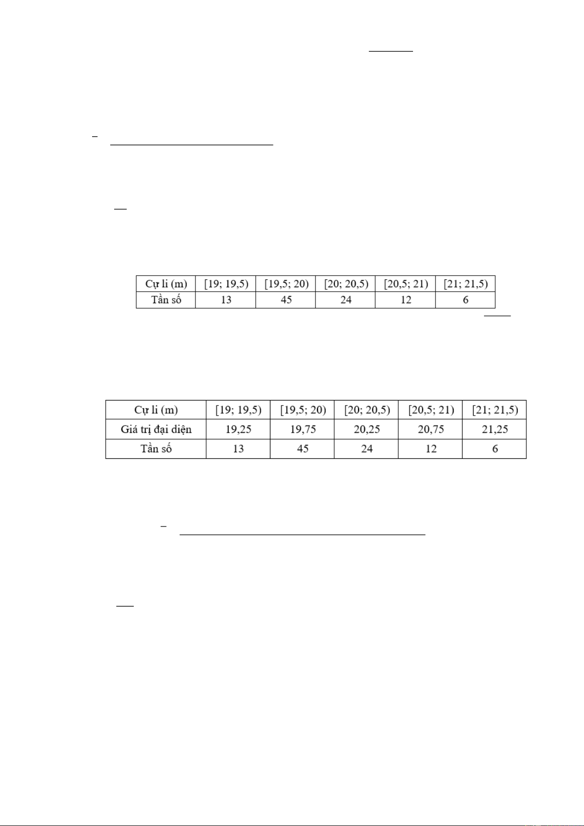 Câu 1: Bảng dưới đây thống kê cự li ném tạ của một vận động viên.