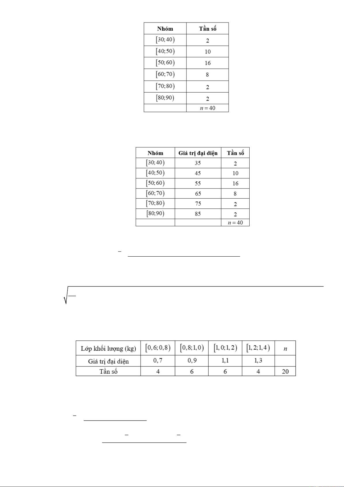 Câu 3: Khối lượng (đơn vị kg) của 20 con cá được cho bởi bảng sau đây
