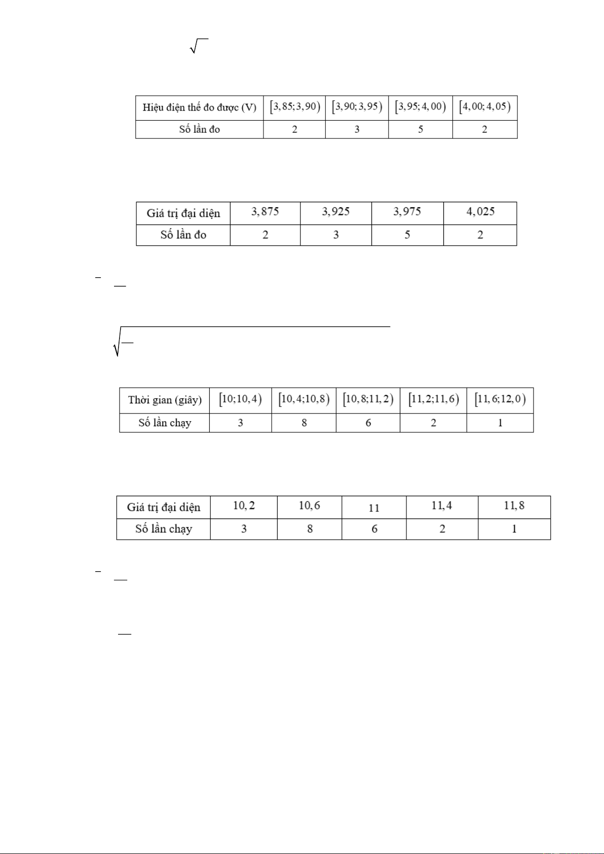 Câu 4: Trong bài thực hành đo hiệu điện thế của mạch điện, bạn Minh tiến hành đo 12 lần, kết quả như sau: