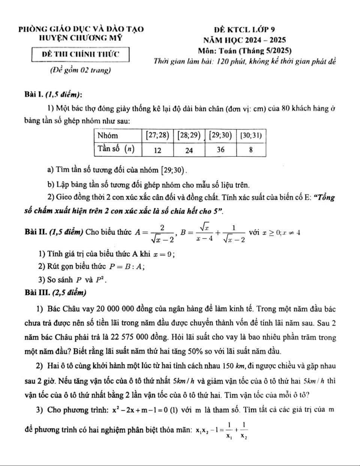 Từ (1) và (2) suy ra P. 1 P 0 0,25 Vậy với x 0;x 4 thì 2 P P . Bài III 1)