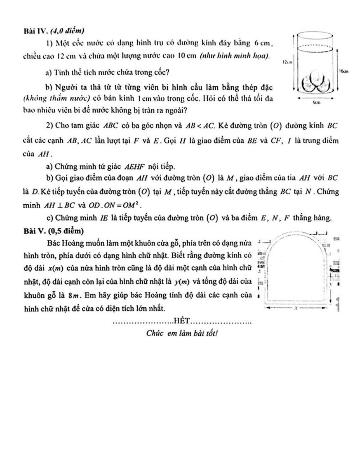 a) Bán kính đáy cốc hình trụ là: 6 : 2 = 3 (cm) . 0,25 (4,0 điểm)