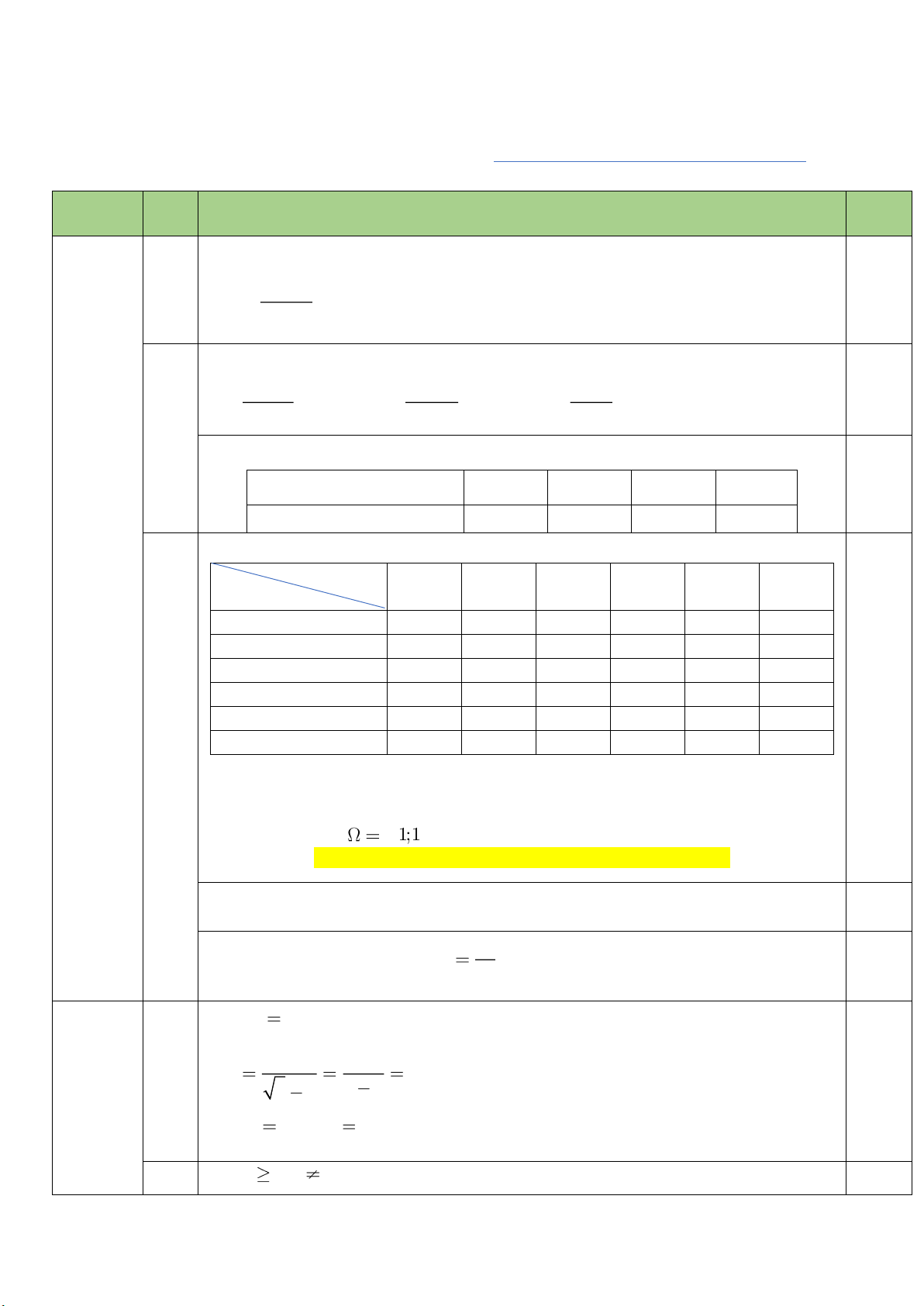 Gieo đồng thời 2 con xúc xắc cân đối và đồng chất nên các kết quả là đồng khả năng. 0,25 Không gian mẫu
