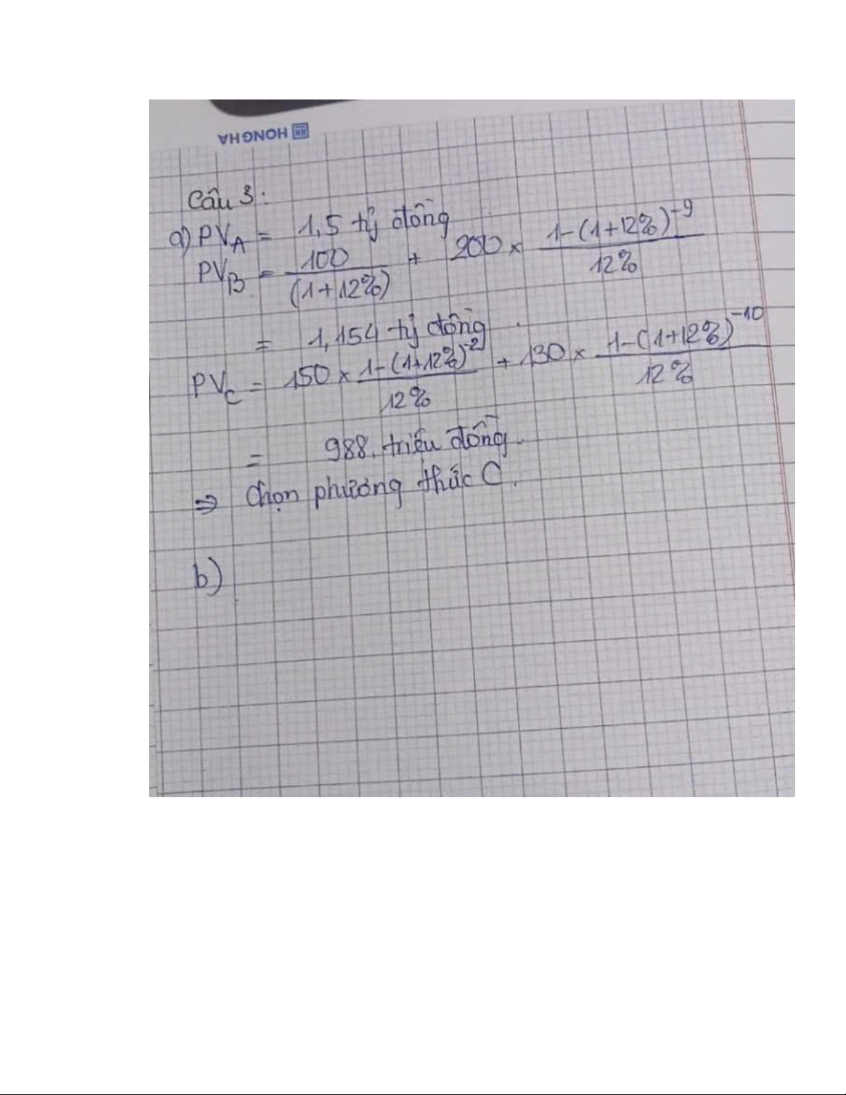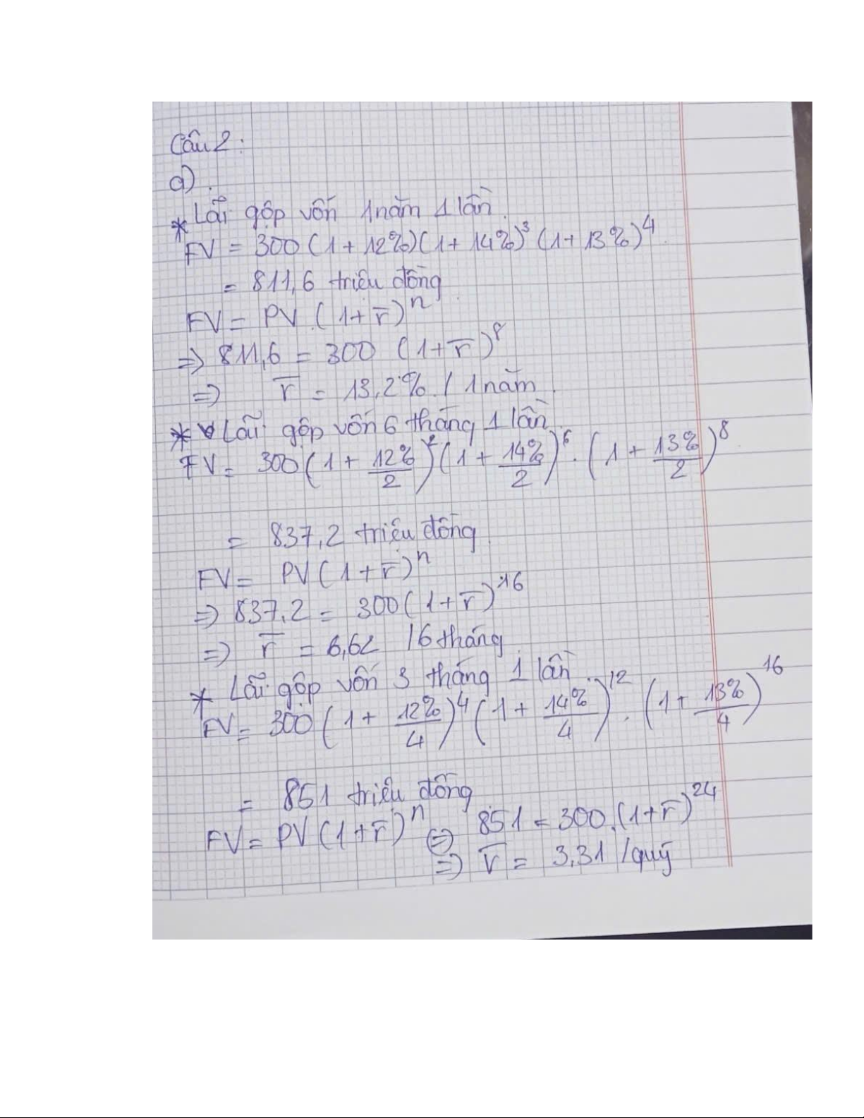 c. Khi đáo hạn A phải trả cho ACB là bao nhiêu? Tổng tiền lãi ngân hàng nhận được là bao nhiêu? Bài 3: