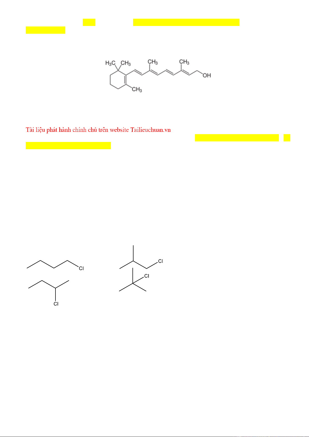 Câu 2. Vitamin A là một chất dinh dưỡng thiết yếu cho con người và có có cấu trúc phân tử biểu diễn như sau: