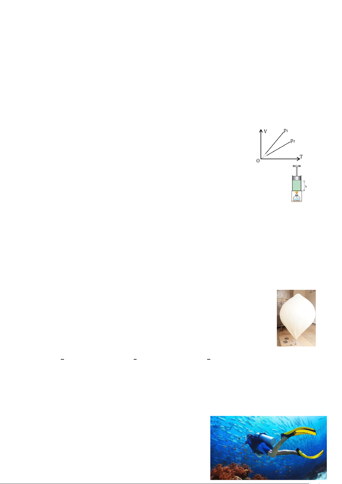 Câu 12. Trên đồ thị V – T vẽ hai đường đẳng áp của cùng một khối lượng