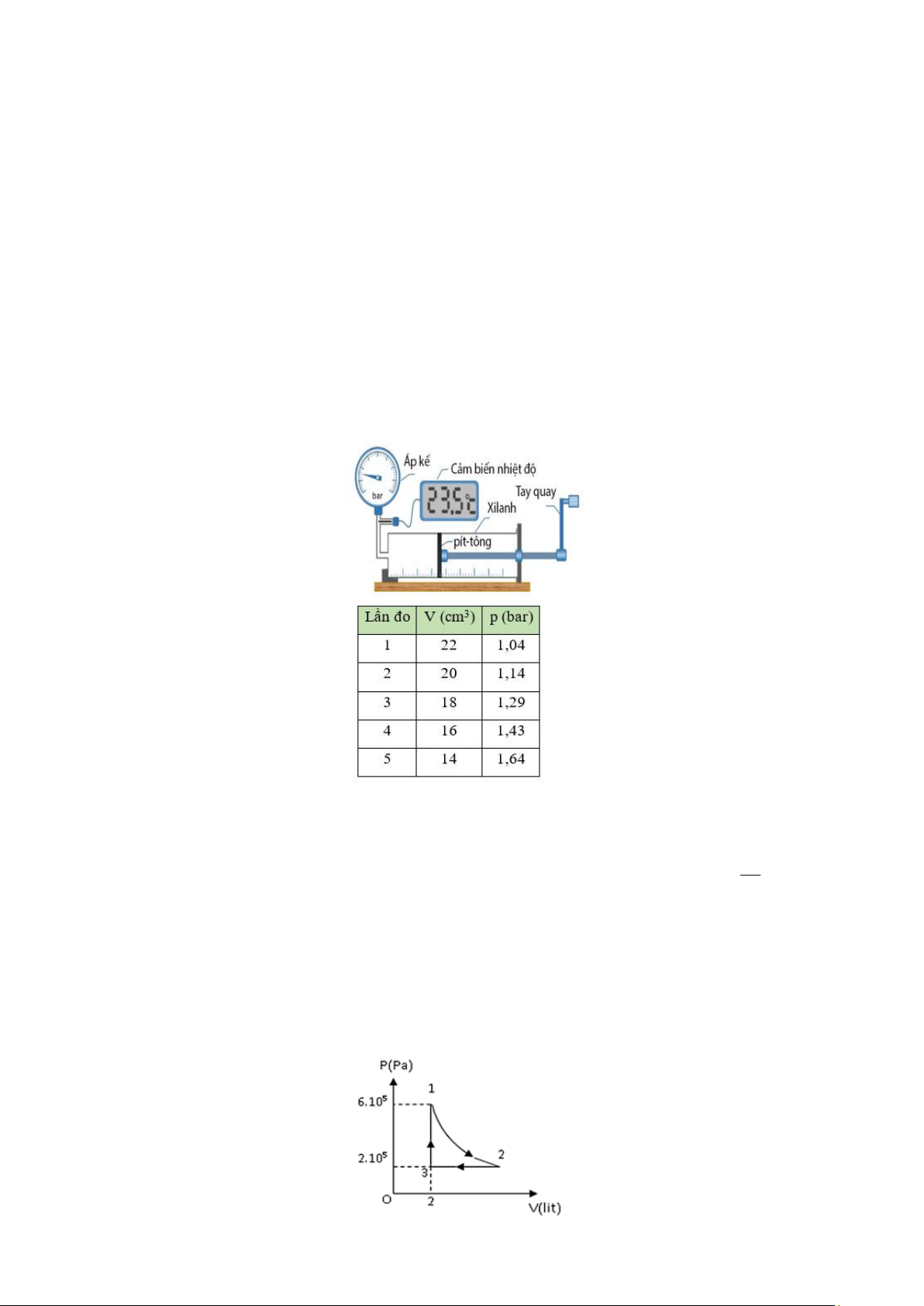 Câu 15. Khi ấn pittông từ từ xuống để nén khí trong xilanh, thì thông số nào của khí trong xilanh