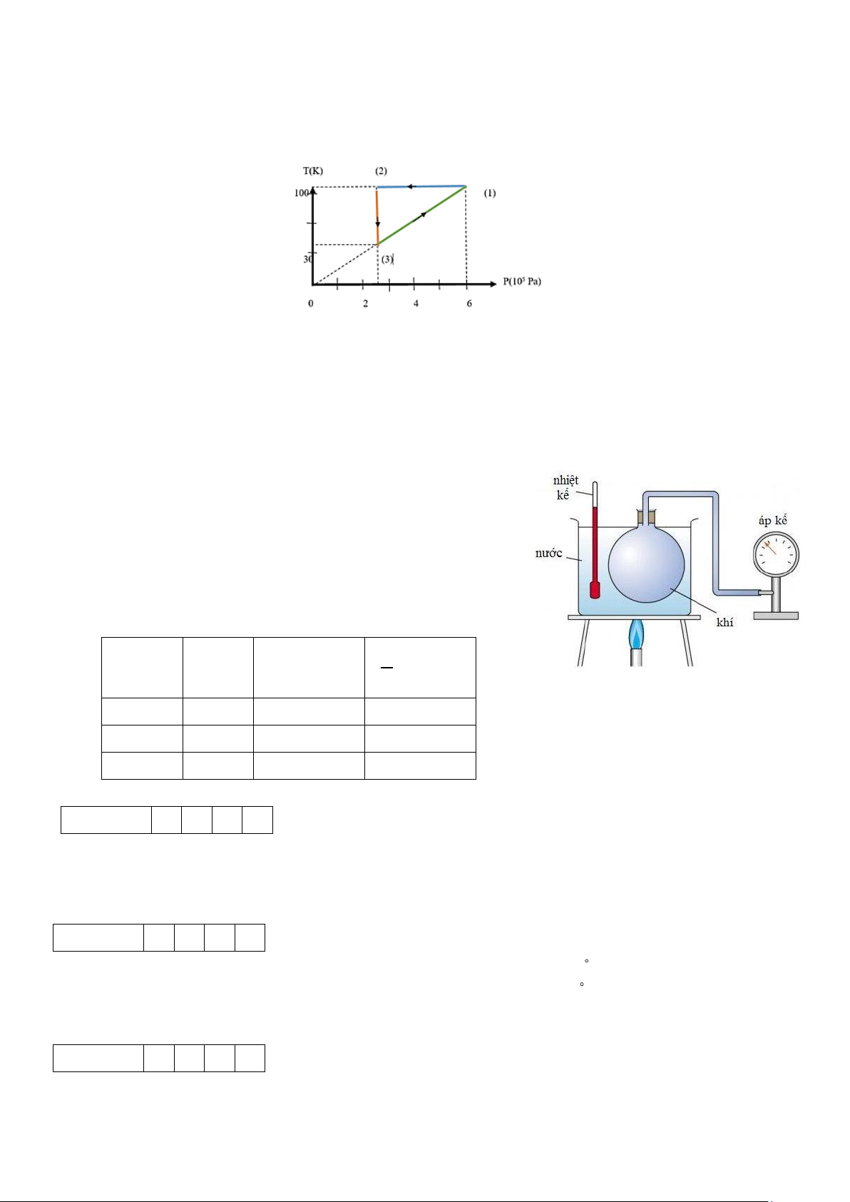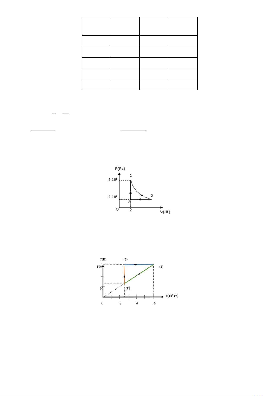 Câu 3. Một khối khí thực hiện 1 chu trình như hình vẽ. Cho p1 =6.105 Pa, V1 = 2 lít, T2 = 100°K, p3 = 2.105 Pa. Trang 3