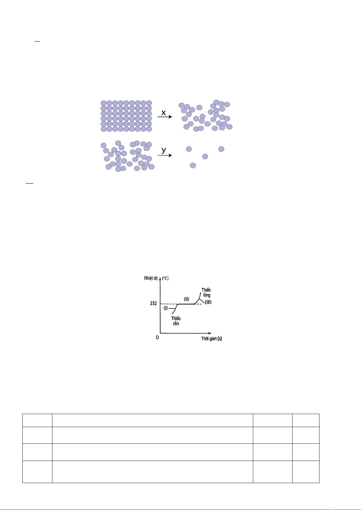 Câu 1. Thực hiện thí nghiệm nung nóng một vật bằng thiếc ở áp suất 1 atm, người ta thu được sự