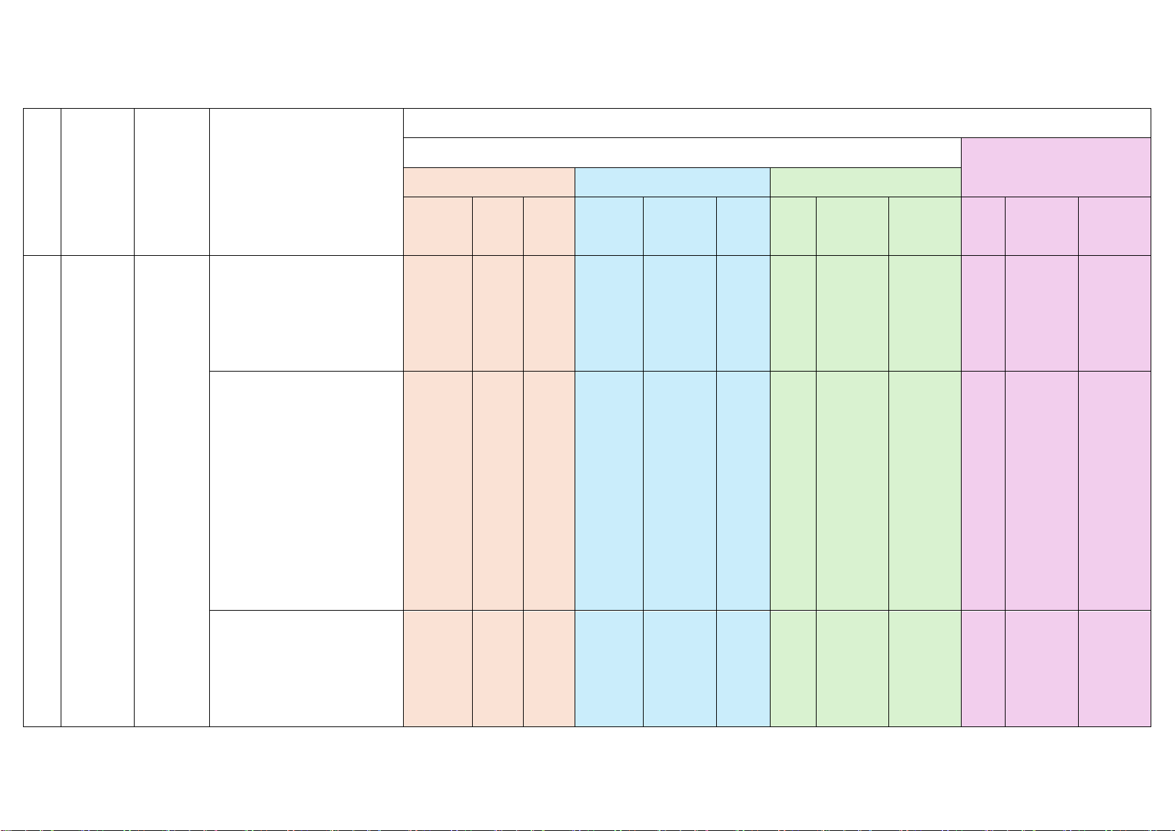Mức độ đánh giá TNKQ Tổng Chủ đề/ Nội dung/ đơn Tự luận Tỉ lệ % TT Nhiều lựa chọn “Đúng – Sai” Trả lời ngắn Chương vị kiến thức điểm Vận Vận Vận Vận Vận Biết Hiểu Biết Hiểu Biết Hiểu Biết Hiểu Biết Hiểu dụng dụng dụng dụng dụng Phương trình quy về phương 2 1 2 1 0 trình bậc nhất Phương một ẩn. trình và Khái niệm 1 hệ phương trình và 20% phương hệ hai phương 2 trình trình bậc nhất 1 2 0 1 hai ẩn. Giải hệ phương trình bậc nhất hai ẩn. Bất đẳng