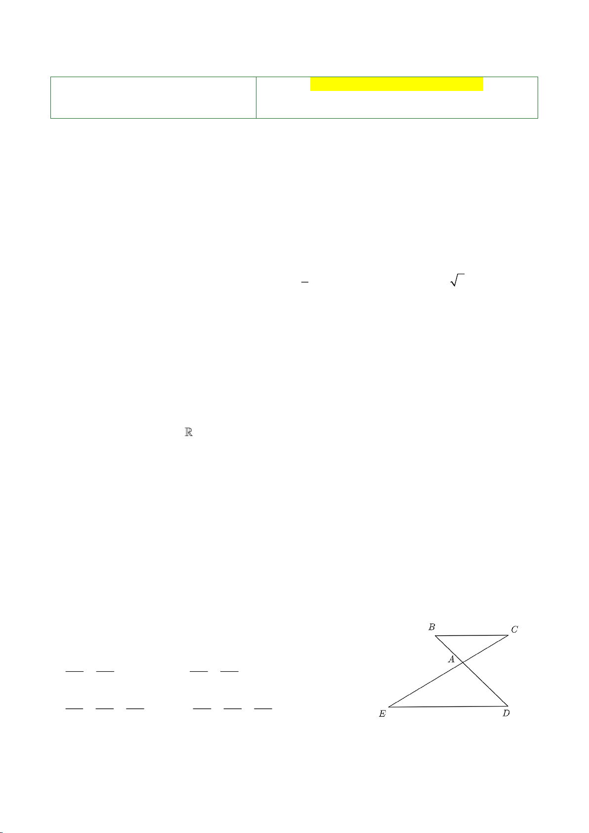 Câu 7. Cho hình vẽ bên, biết BC∥ ED . Khẳng định nào sau đây là sai? AB BC AD AE A. = . B. = . AD DE AB AC AB AC BC AD AE DE C. = = . D. = = . DB CE DE AB AC BC