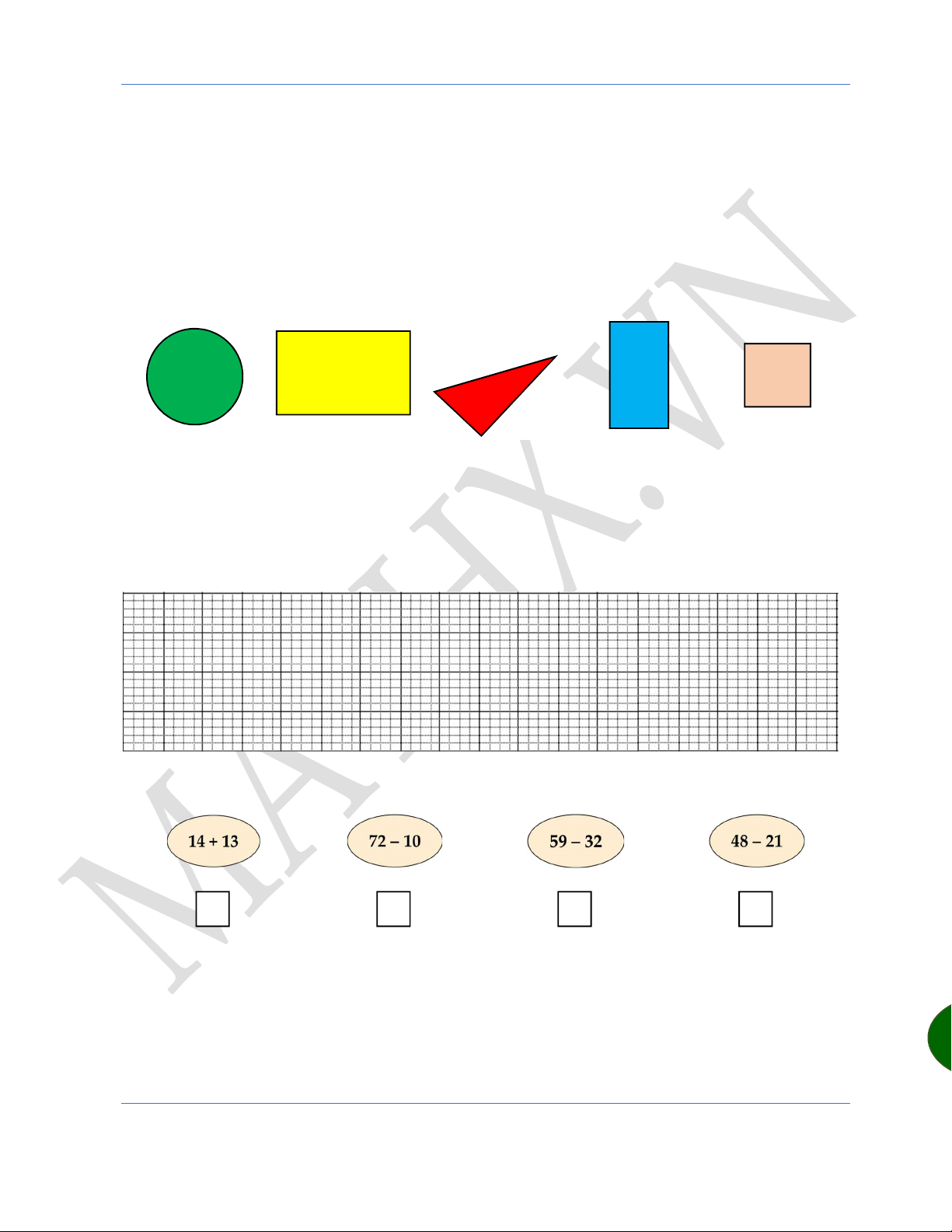 Học toán online hiệu quả cùng thầy Trần Hữu Hiếu Hotline: 091.269.8216 12 www.mathx.vn Toán lớp 1 ĐỀ SỐ 5