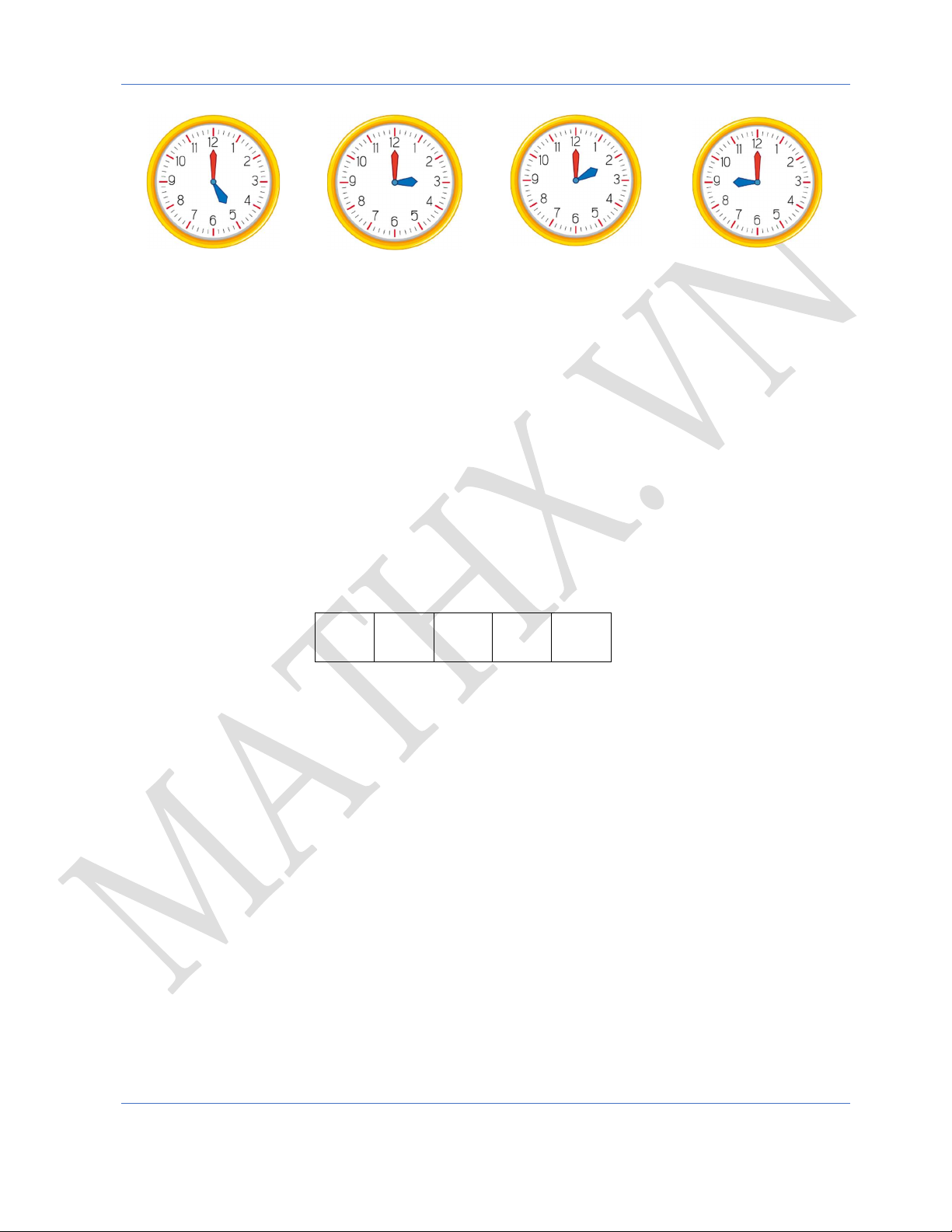 Học toán online hiệu quả cùng thầy Trần Hữu Hiếu Hotline: 091.269.8216 14 www.mathx.vn Toán lớp 1 A. 2 giờ B. 4 giờ C. 12 giờ D. 3 giờ