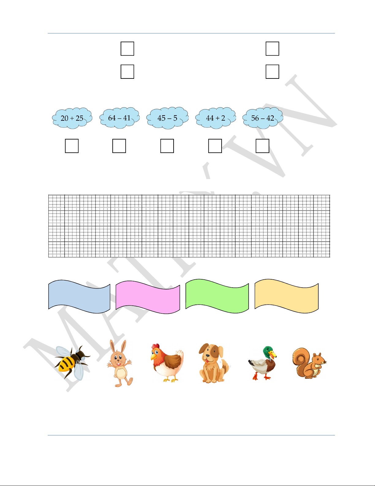 Câu 5. (1 điểm ) Em hãy viết 5 phép tính cộng, trừ có kết quả bằng 44.