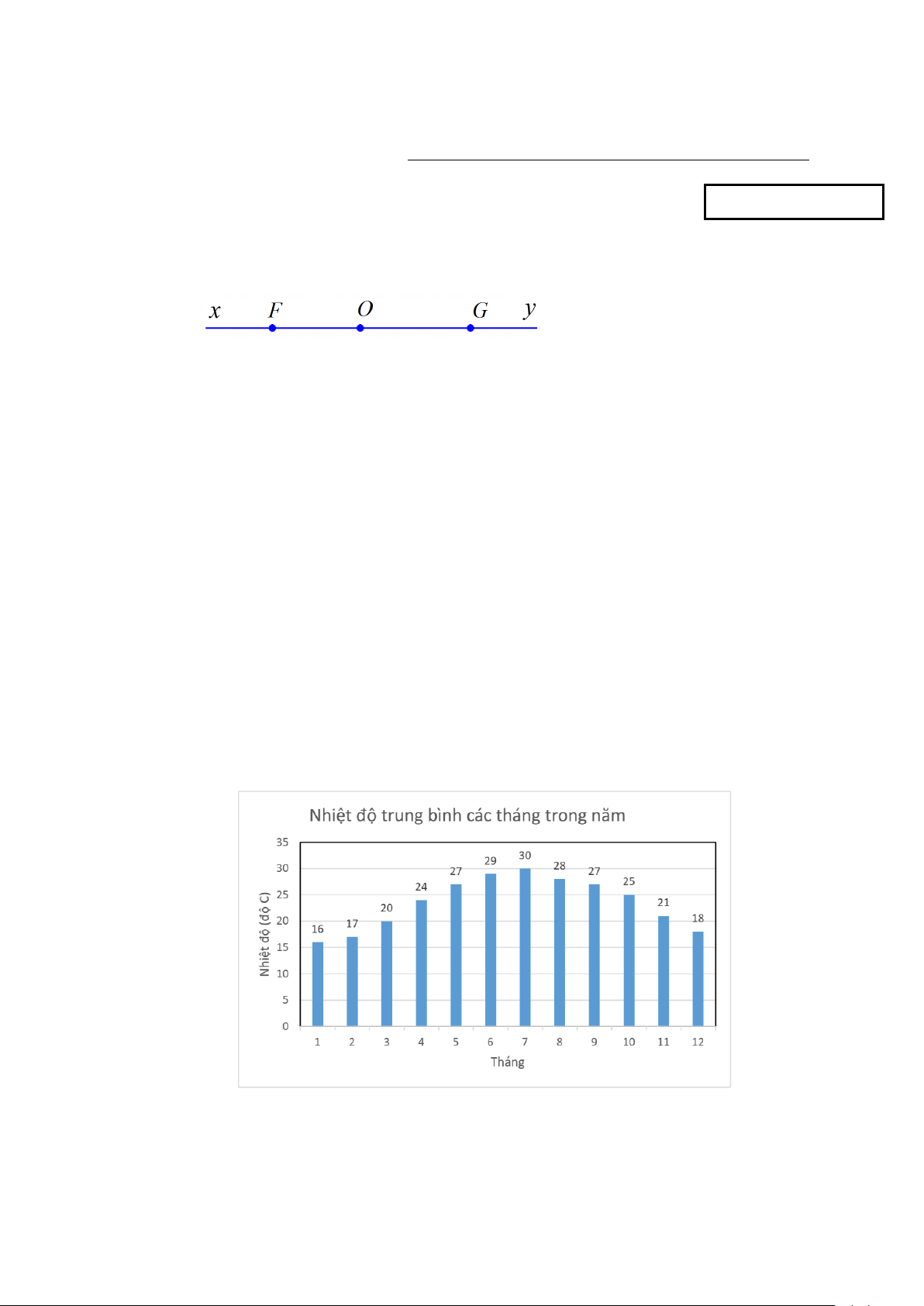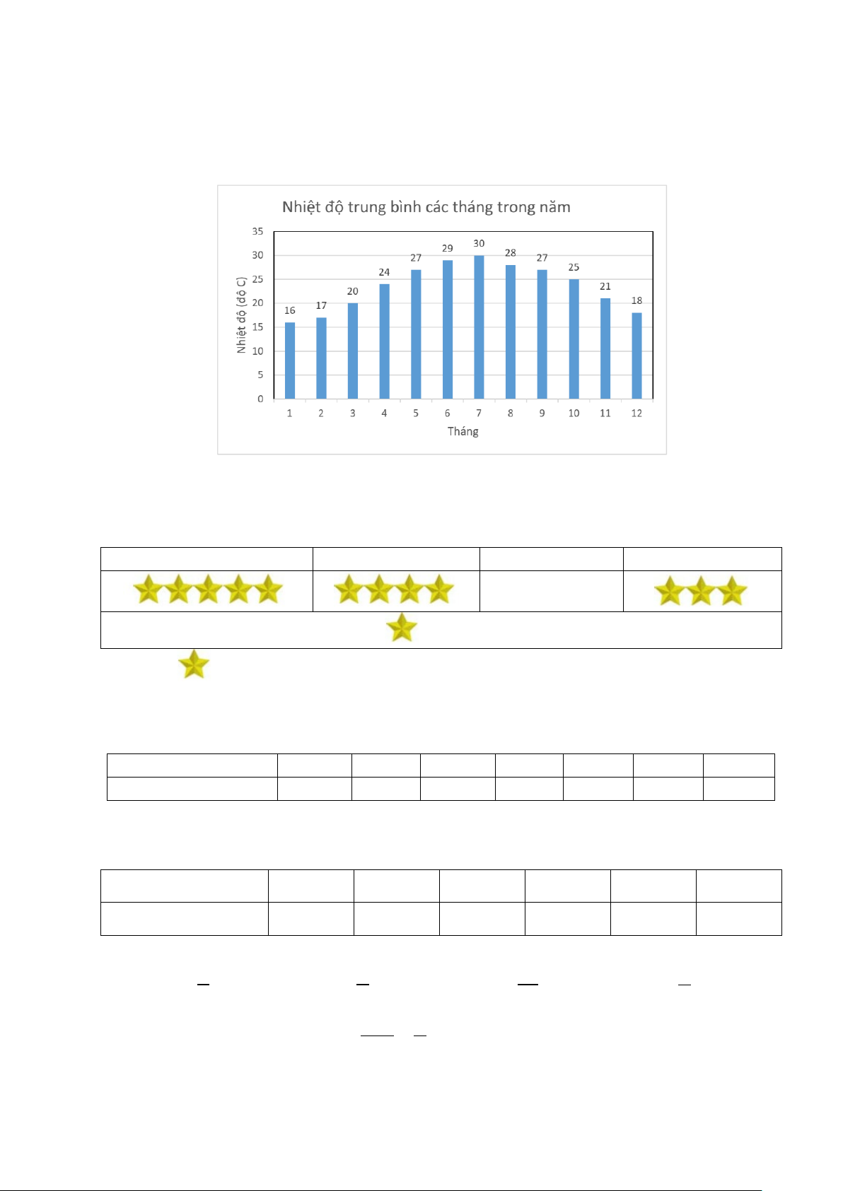 Câu 4. Biểu đồ dưới đây cho biết thông tin về nhiệt độ trung bình trong các tháng trong