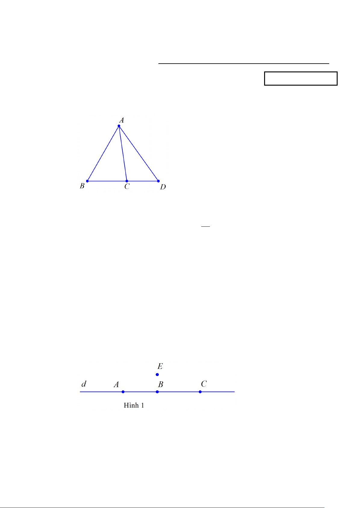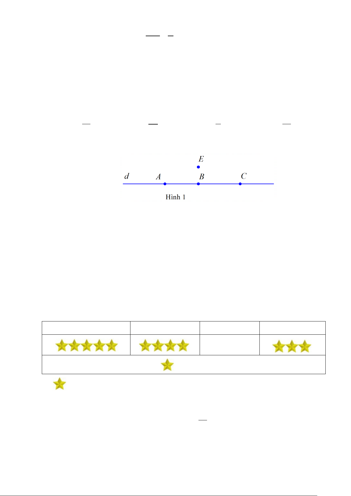 Câu 8. Ở hình 1, điểm nào sau đây không thuộc đường thẳng d ? A. Điểm C . B. Điểm A. C. Điểm E . D. Điểm B .