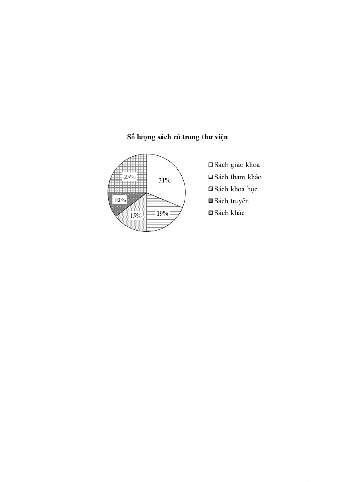 Biểu đồ dưới đây cho biết số lượng các loại sách có trong thư viện của một trường học. Biết có