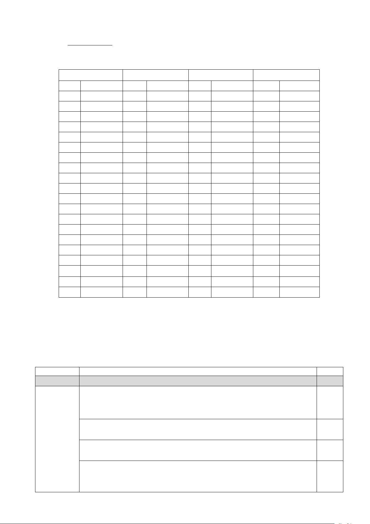 PHẦN I. TRẮC NGHIỆM (5,0 điểm). Mỗi câu đúng được 0,25 điểm. MÃ ĐỀ 171 MÃ ĐỀ 172 MÃ ĐỀ 173 MÃ ĐỀ 174 Câu Đáp án Câu Đáp án Câu Đáp án Câu Đáp án 1 A 1 C 1 B 1 D 2 A 2 C 2 A 2 A 3 B 3 C 3 C 3 B 4 C 4 A 4 D 4 D 5 C 5 B 5 A 5 A 6 B 6 B 6 C 6 B 7 D 7 C 7 D 7 D 8 A 8 B 8 A 8 B 9 B 9 D 9 B 9 D 10 D 10 D 10 C 10 C 11 B 11 A 11 A 11 A 12 C 12 A 12 C 12 C 13 C 13 B 13 D 13 B 14 D 14 C 14 B 14 C 15 A 15 A 15 D 15 D 16 D 16 D 16 B 16 C 17 D 17 B 17 C 17 A 18 B 18 A 18 A 18 C 19 A 19 D 19 B 19 B 20 C 20 D 20 D 20 A