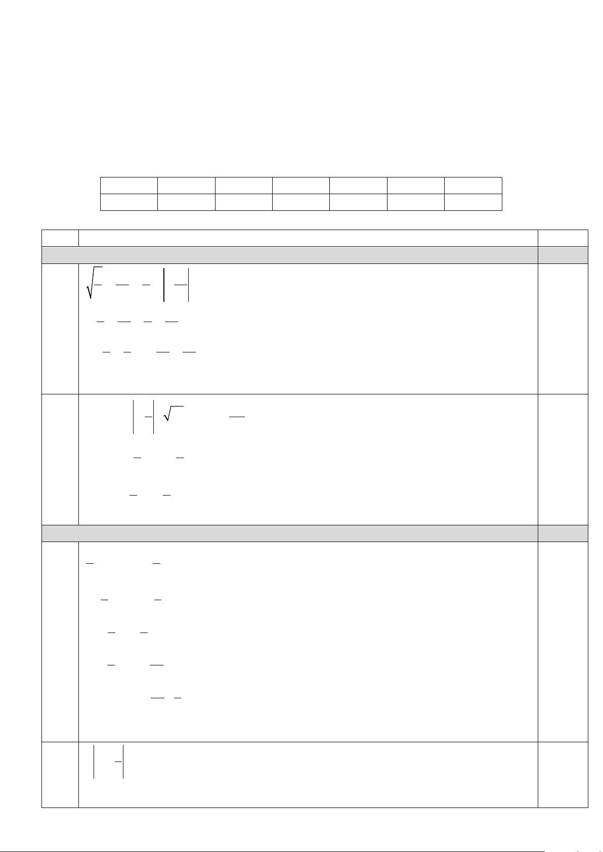 Vậy x 7 1 b) 2 x − − 2 = 1 2 1 2 x − = 1 + 2 2 0,25 1 x − = 5 2 TH1: 1 x − = 5 2 1 x = 5 + 2 11 x = 2 0,25 TH2: 1 x − = 5 − 2 1 x = 5 − + 2 9 x = − 2 Vậy 9 11 0,25 x ∈ − ; 2 2 Câu 9. 1,0