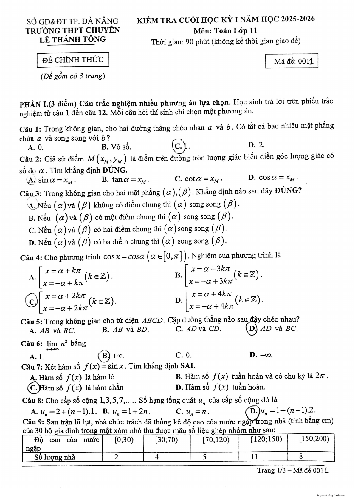 Đề kiểm tra cuối học kỳ I năm học 2025-2026 môn Toán lớp 11