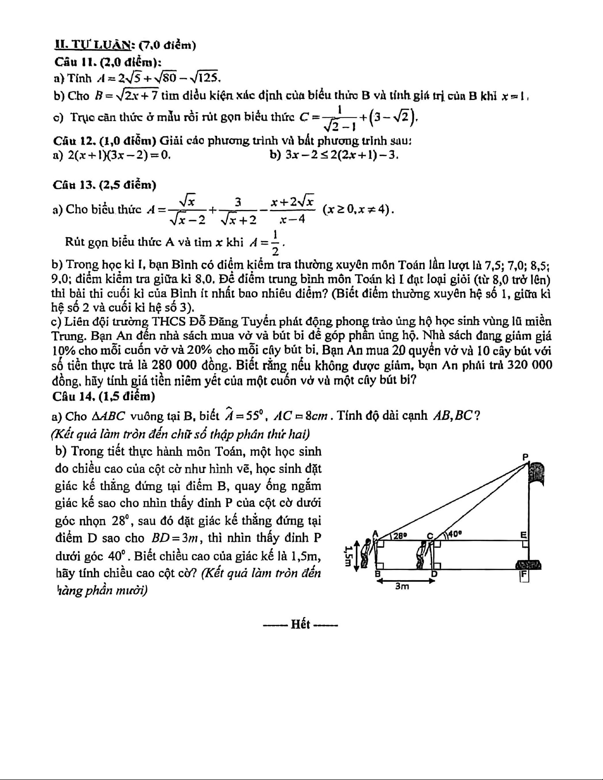 Đề kiểm tra cuối kì I năm học 2025-2026 môn Toán lớp 9