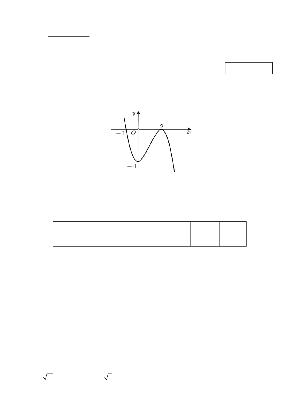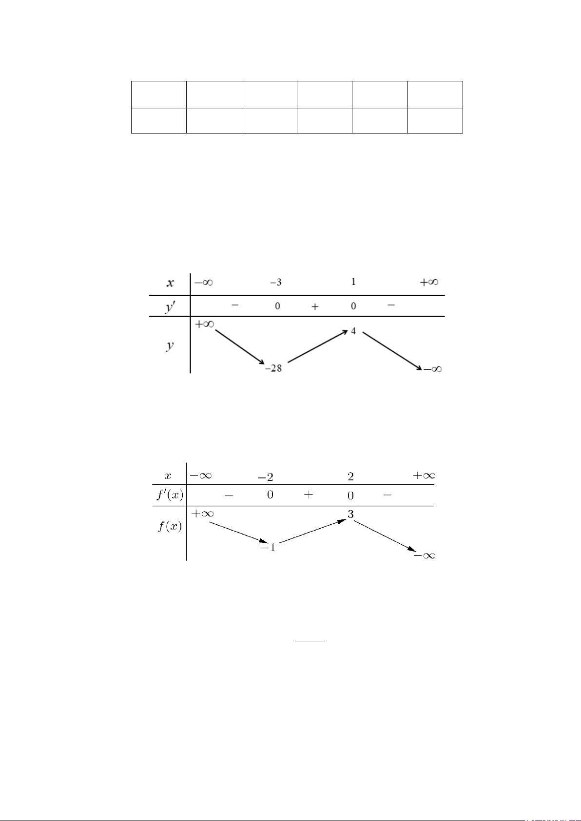 Câu 10: Cho hàm số y = f (x) có bảng biến thiên như sau:
