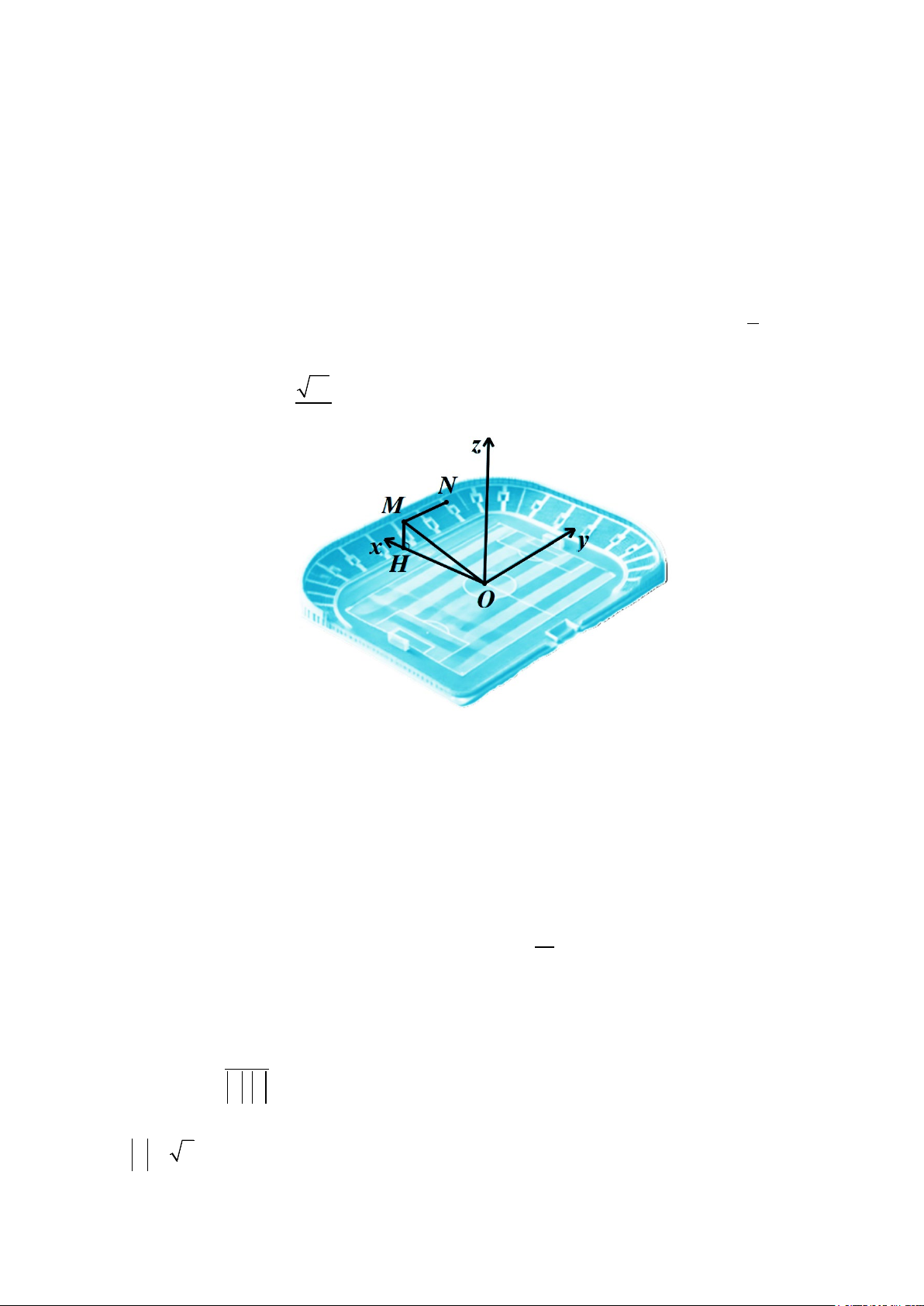 Câu 2: Xét hệ trục tọa độ Oxyz với mặt phẳng Oxy trùng với mặt sân phẳng, tia Oz vuông