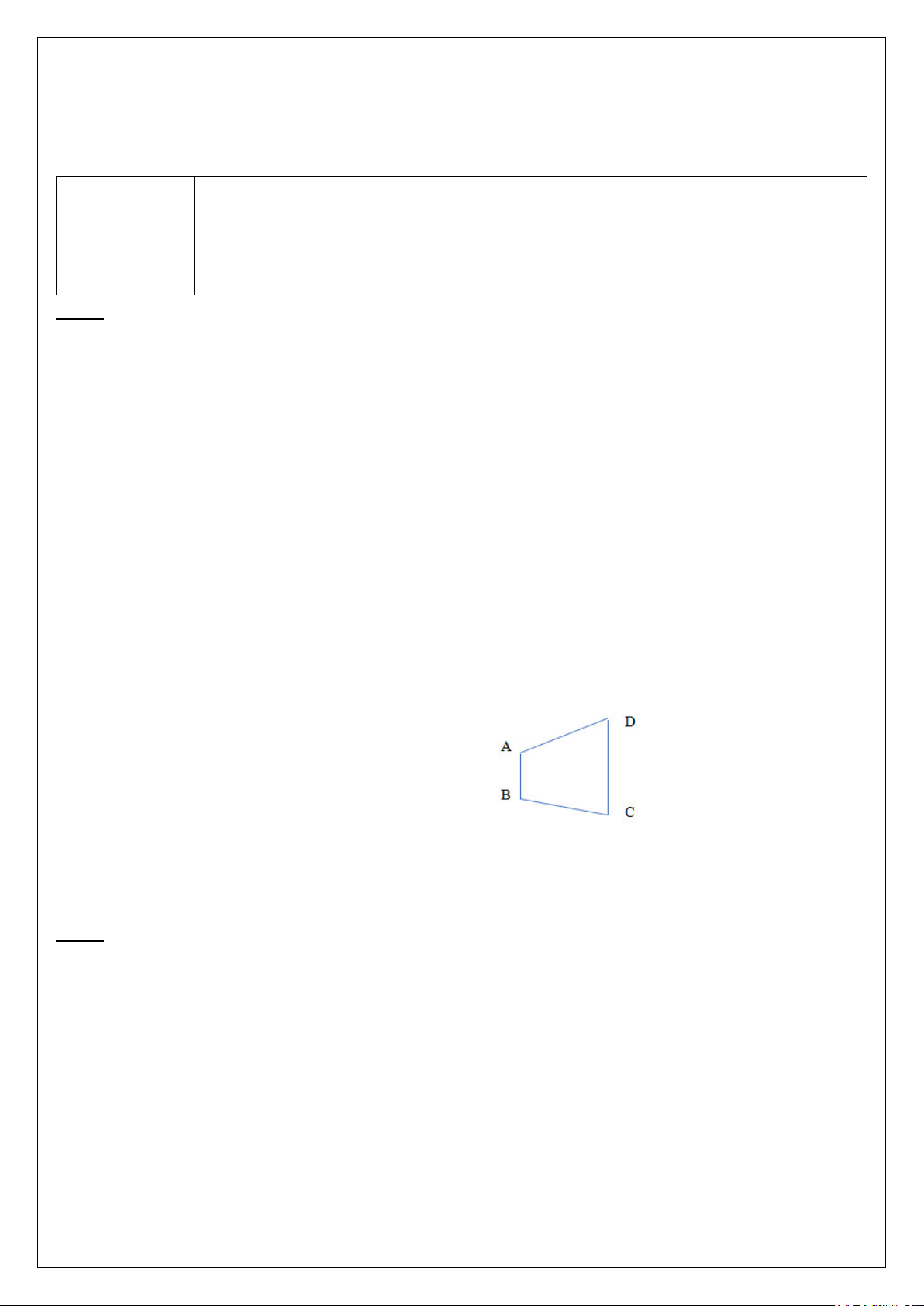 5. Góc đỉnh A của hình tứ giác ABCD là: A. Góc vuông B. Góc tù C. Góc nhọn D. Góc bẹt