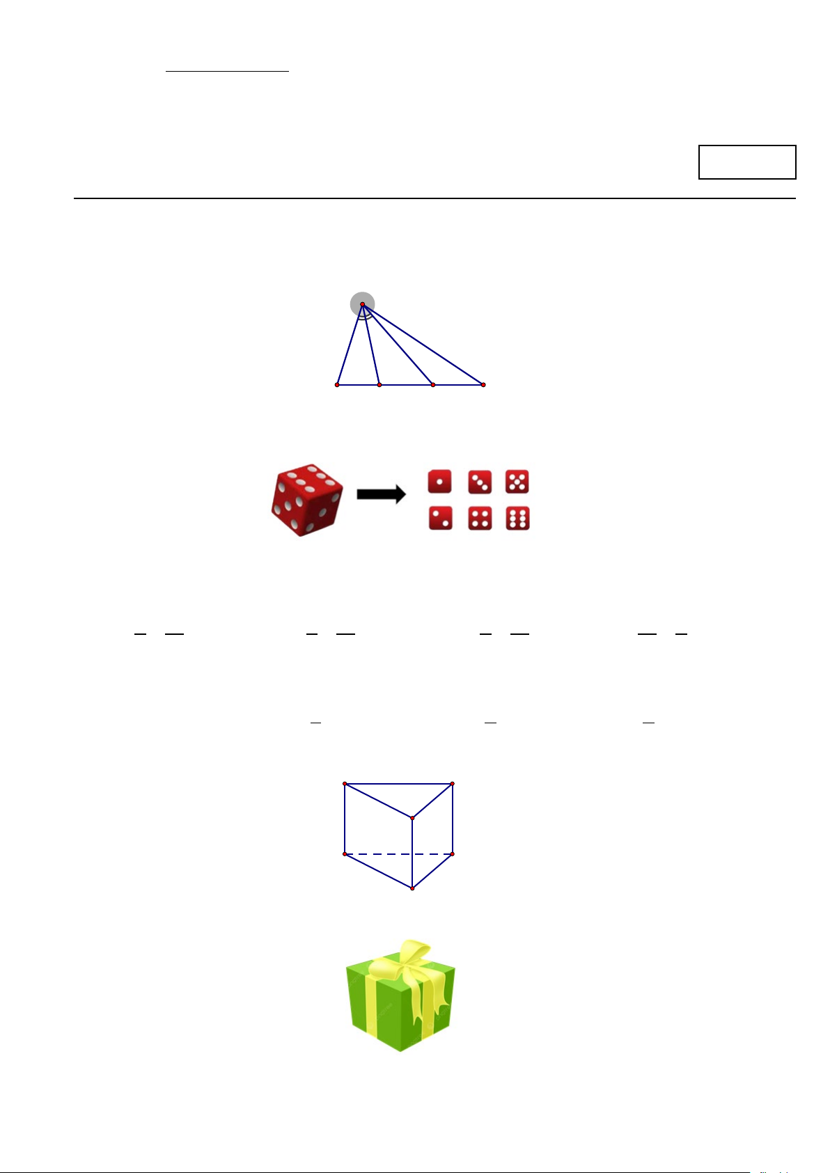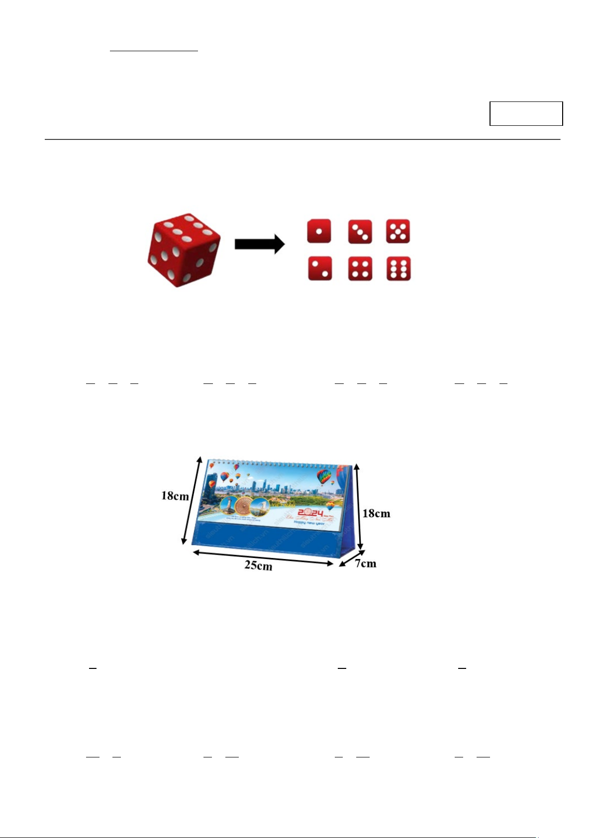 Câu 6: Hộp quà hình lập phương dưới đây có bao nhiêu mặt? A. 3 mặt. B. 5 mặt. C. 4 mặt. D. 6 mặt. Trang 1/3