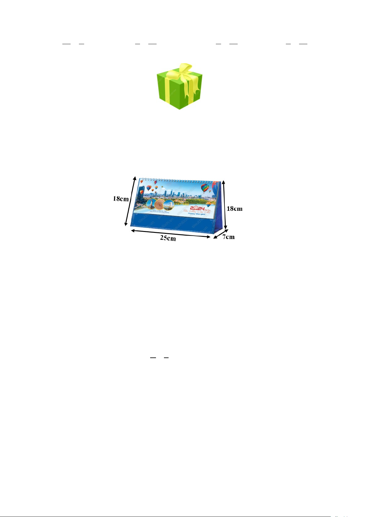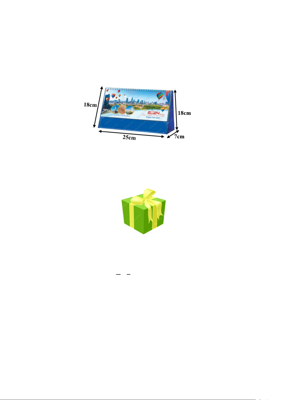 Câu 3: Lịch để bàn dưới đây là một hình lăng trụ đứng đáy là tam giác cân với các kích thước