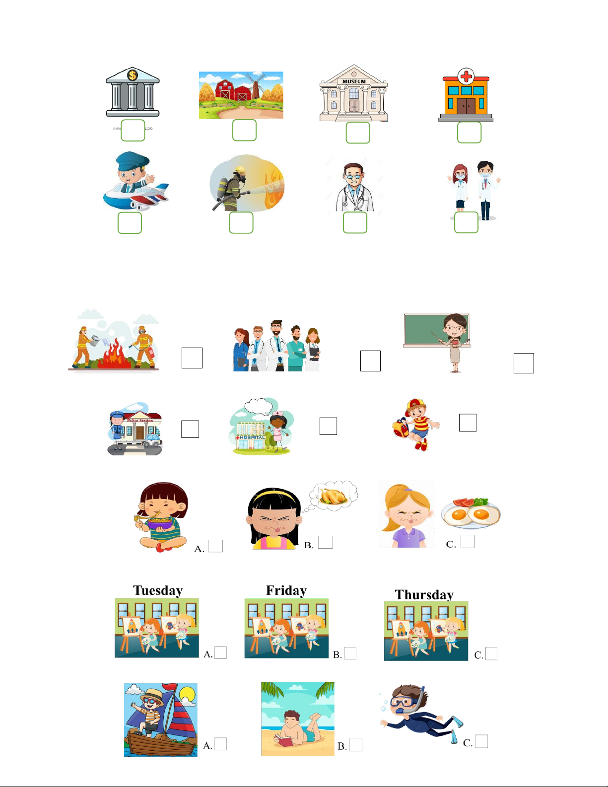 1. They’re _______. They help sick people. A. doctor B. farm C. teacher