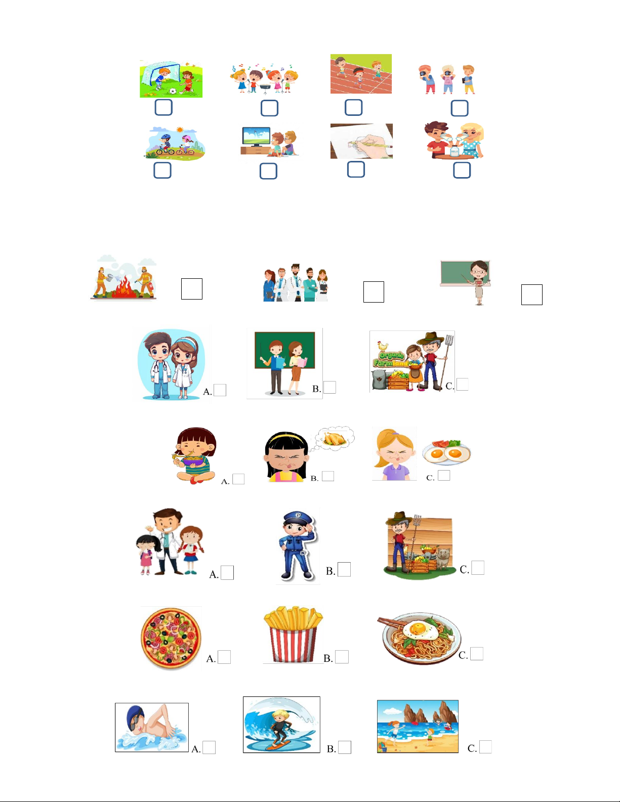 Example: We fight fires. We’re firefighter. A. ✓ B. C. 1. They help sick people. 2. She doesn’t like eggs.