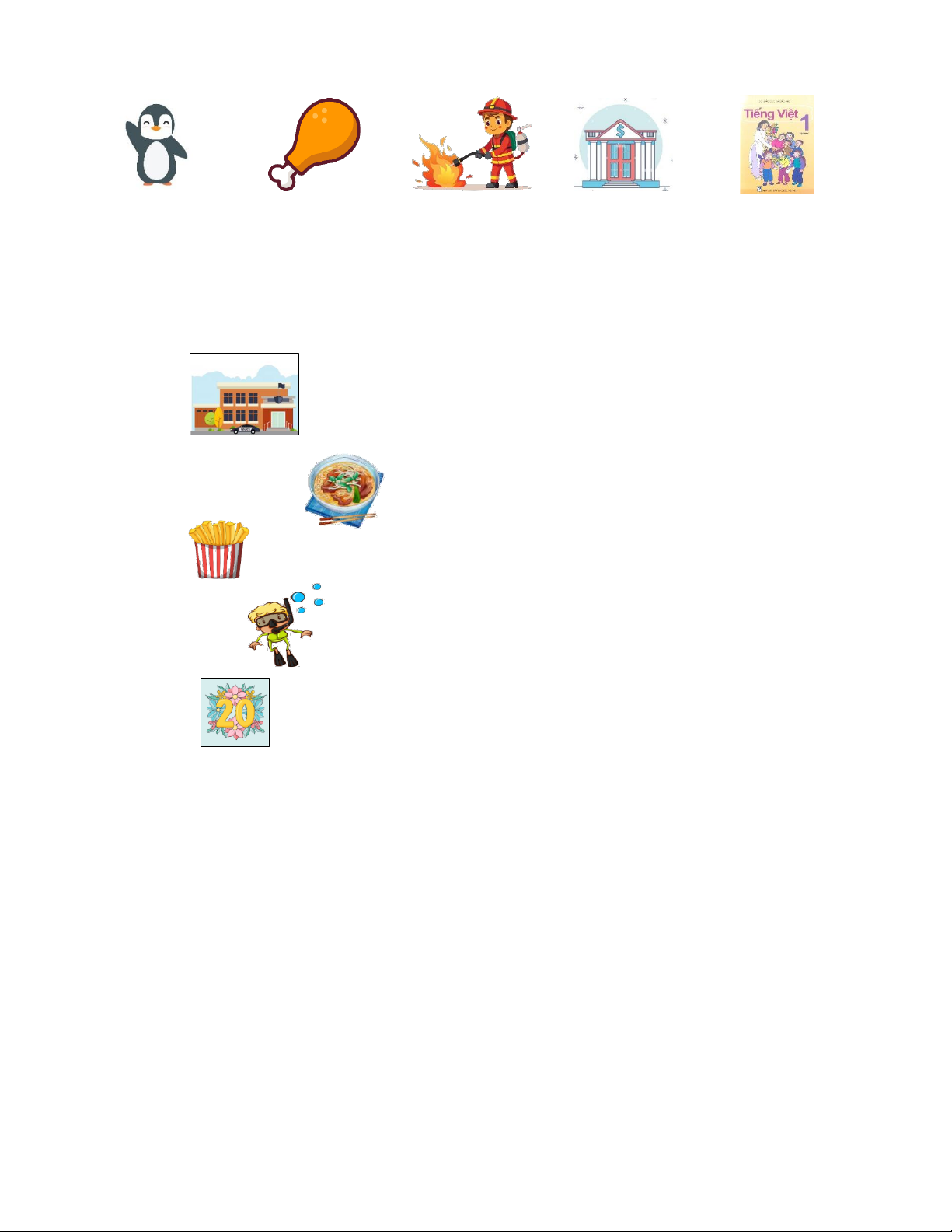 Question 2. Write the words (……./2,5 marks) Học sinh nhìn tranh viết đúng từ vựng 1. 2. 3. 4. 5.