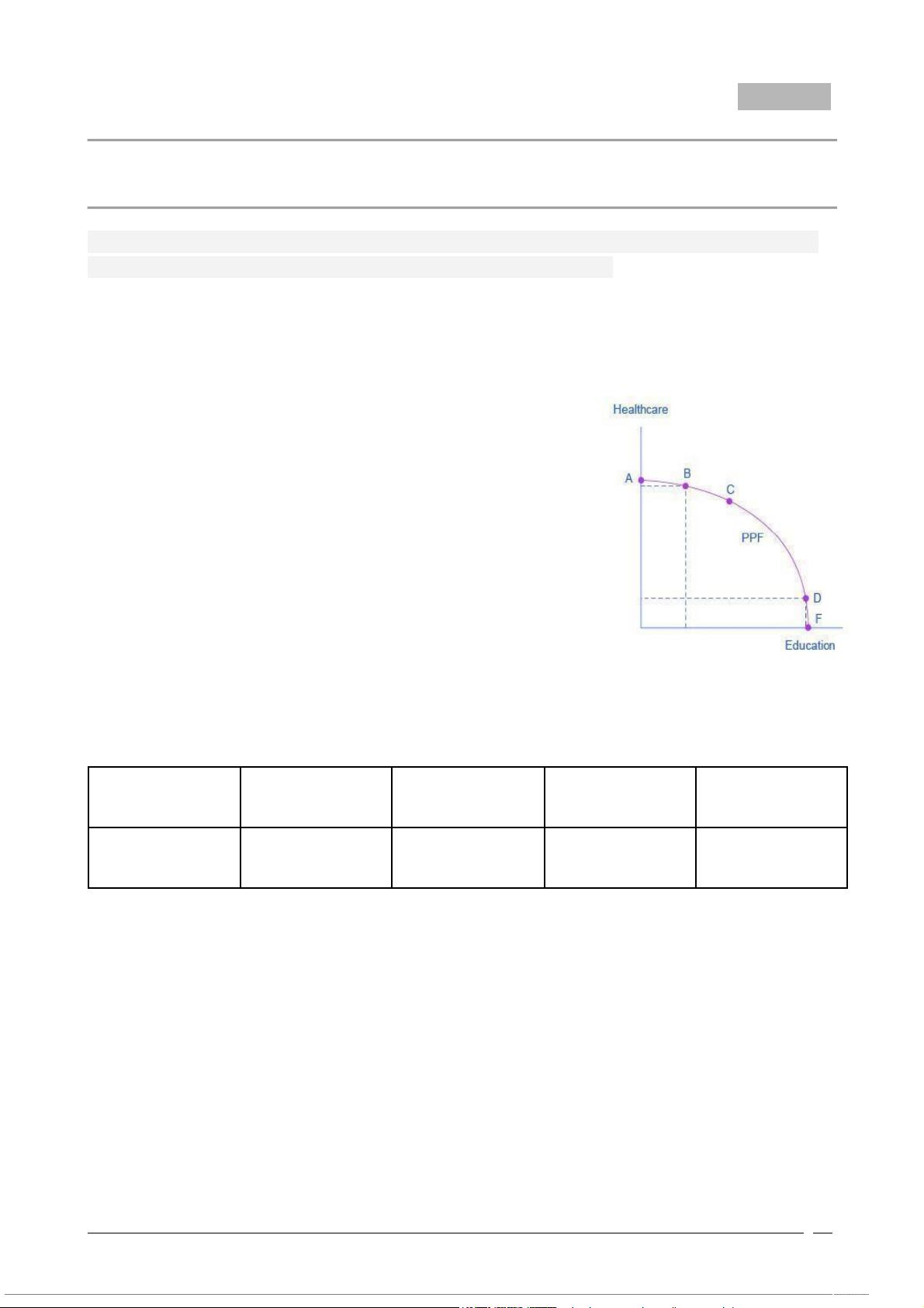 Question 1/6: Fig.1 is a model of Healthcare vs. Education Production Possibilities Frontier .