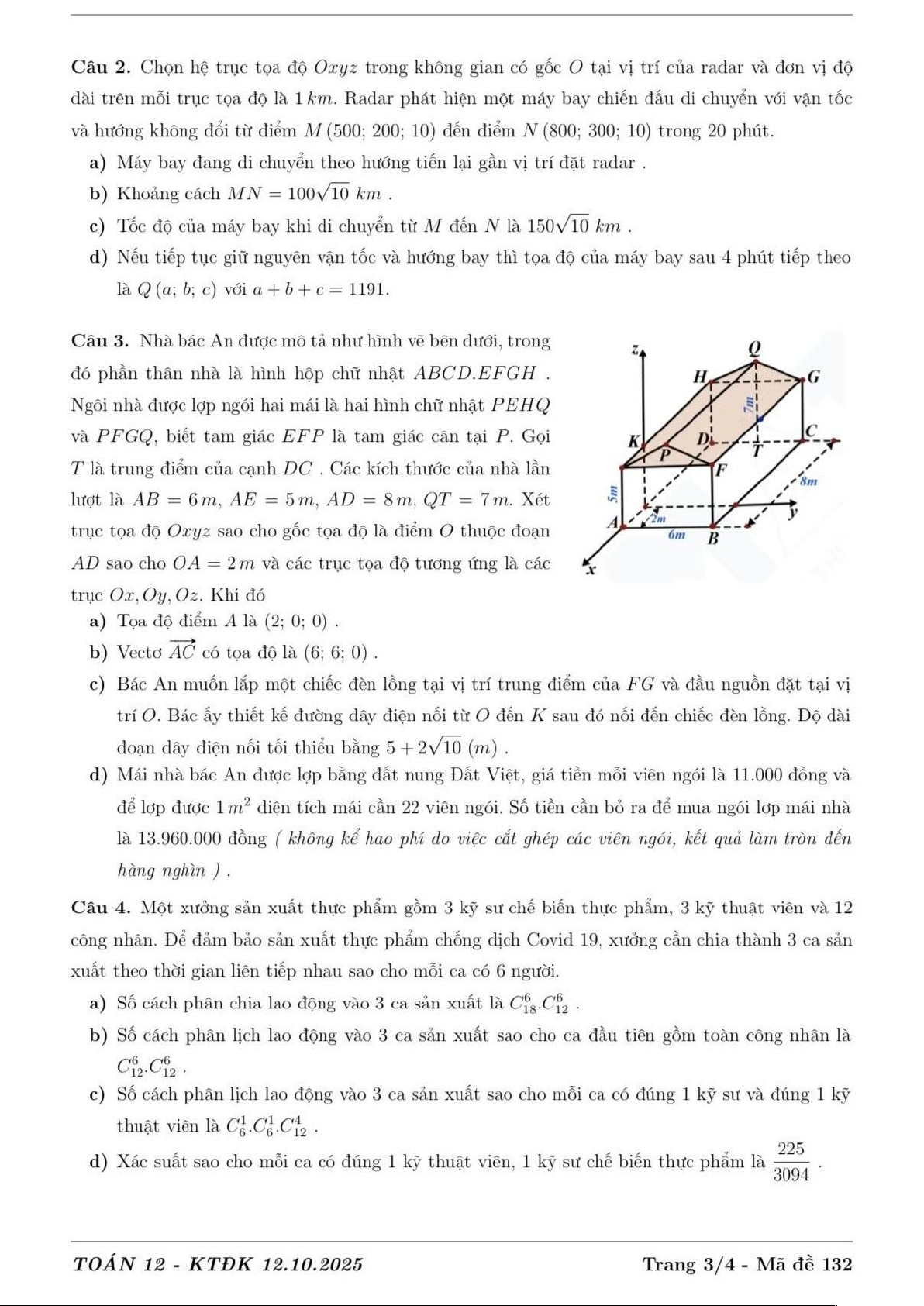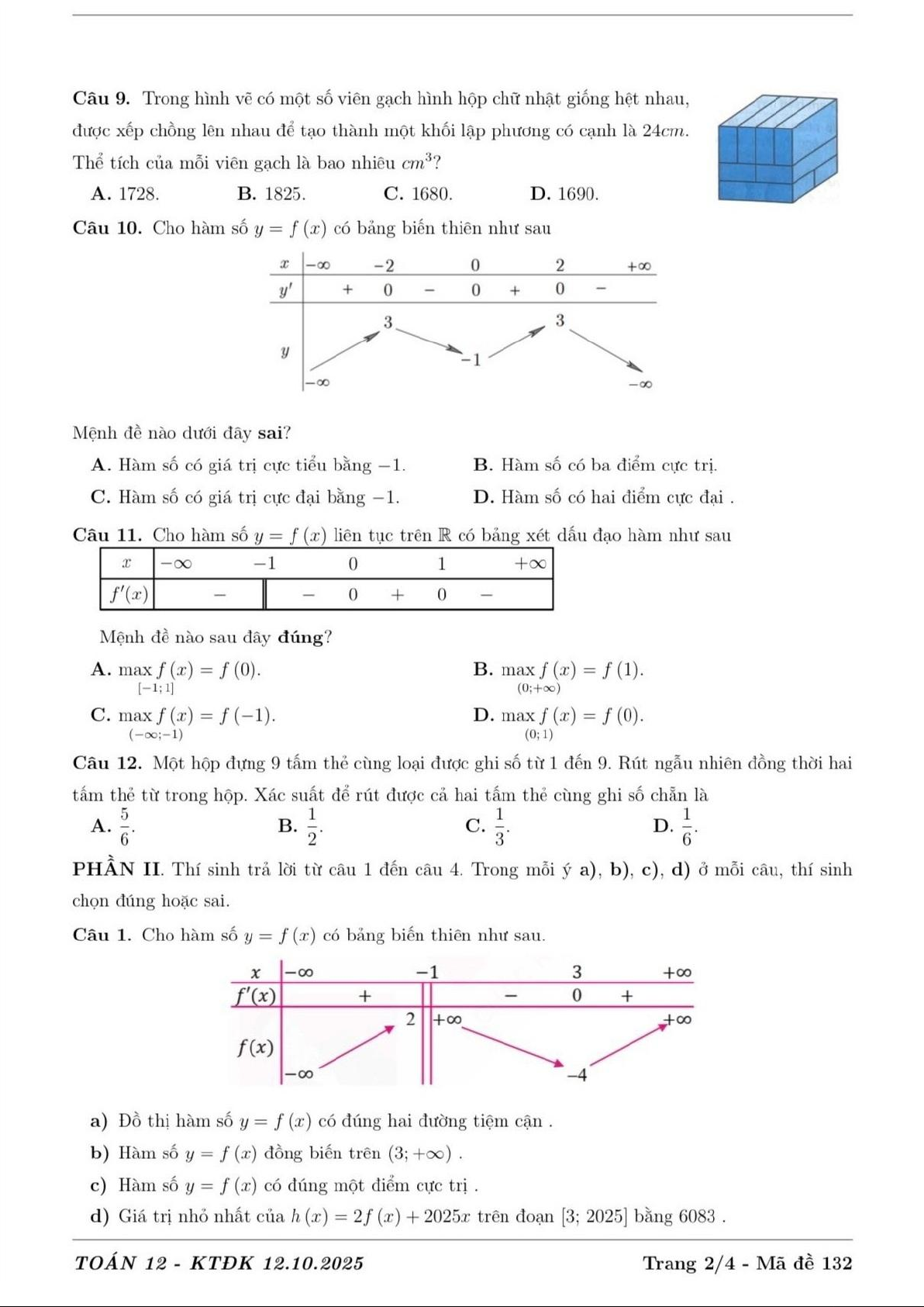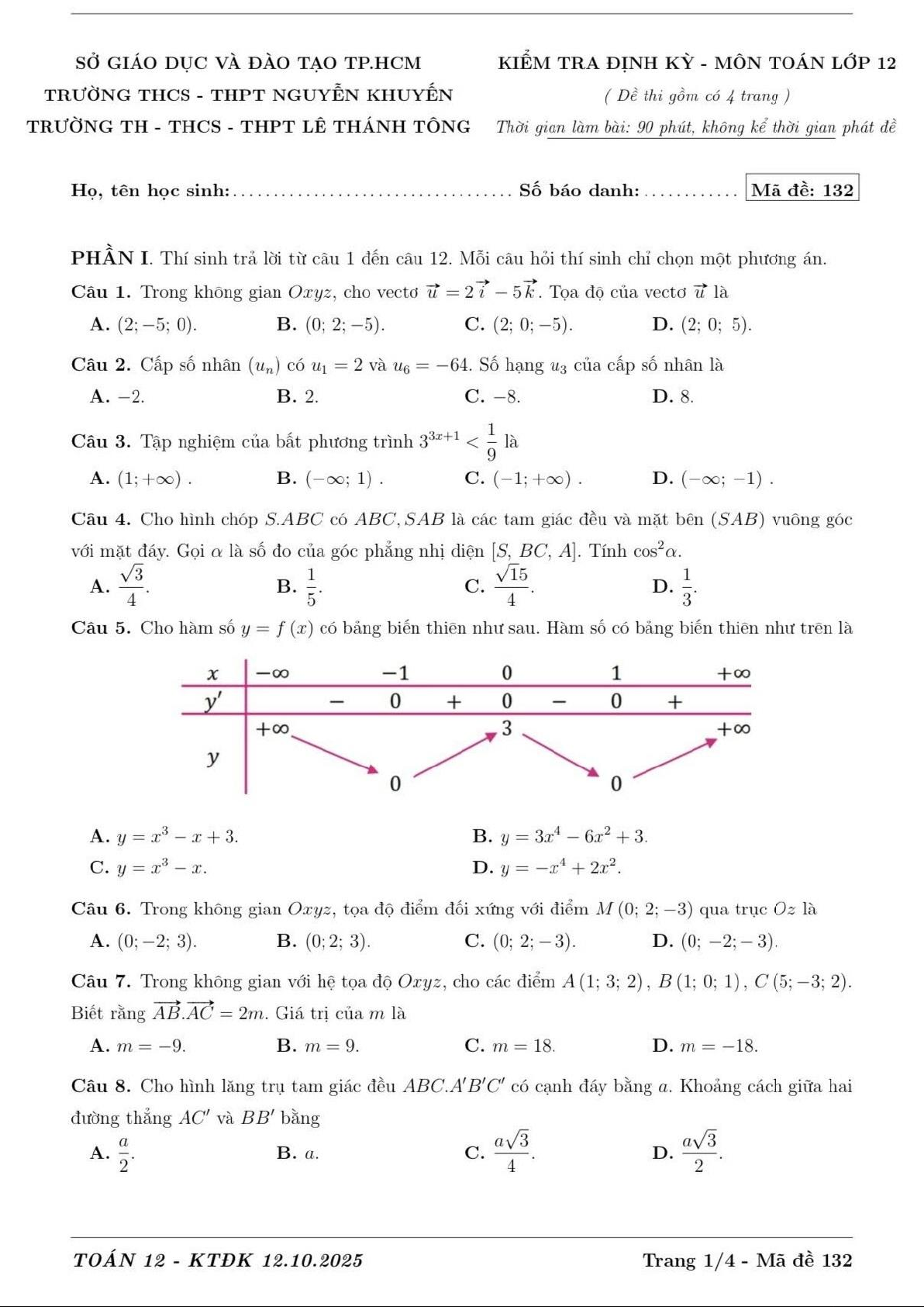 Đề kiểm tra định kỳ môn Toán 12 năm 2025