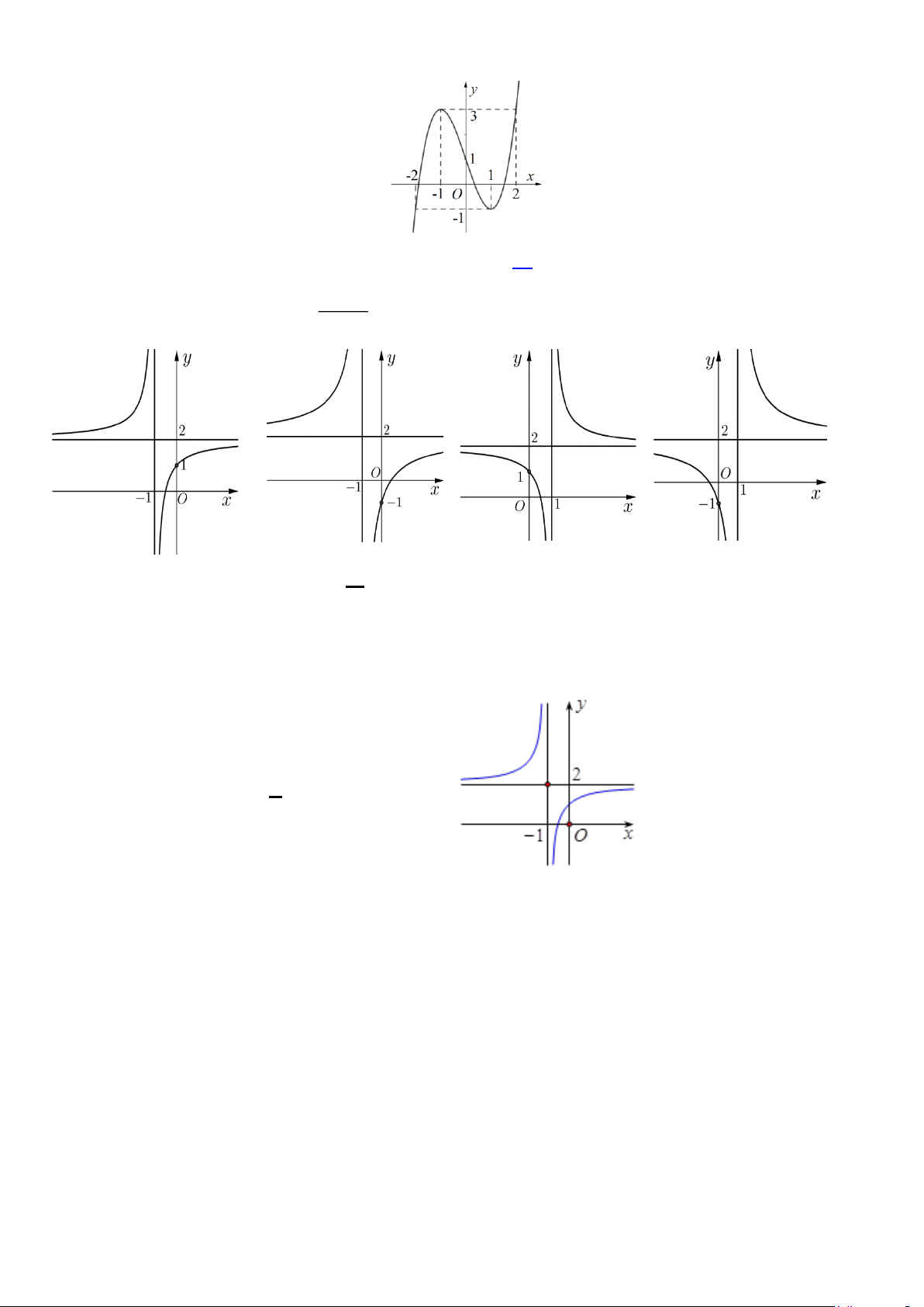 Câu 12: Cho hàm số y = f (x) có đồ thị như đường cong ở hình bên. Xác định tọa độ tâm đối xứng I của đồ thị. A. I (0;2). B. I (-1;2). C. I (-1;0). D. I (2;-1).