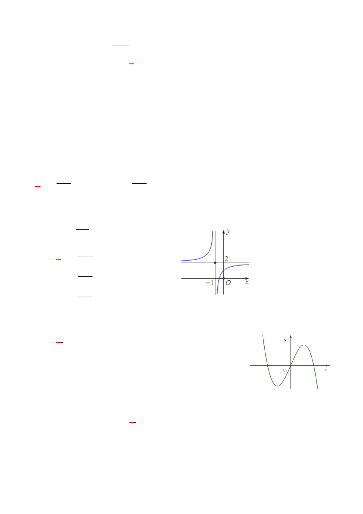 Đồ thị của hàm số nào dưới đây có dạng như đường cong ở hình bên? x −1 A. y = . x +1 2x +1 B. y = . x +1 x + 2 C. y = . x +1 x + 3 D. y = . 1− x